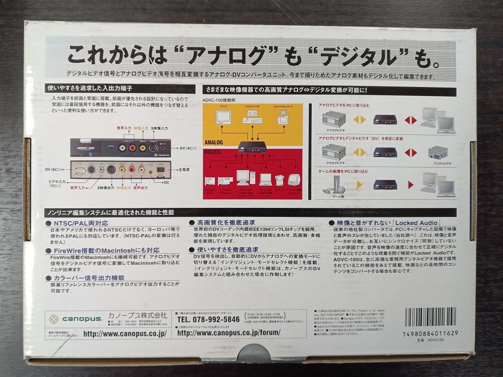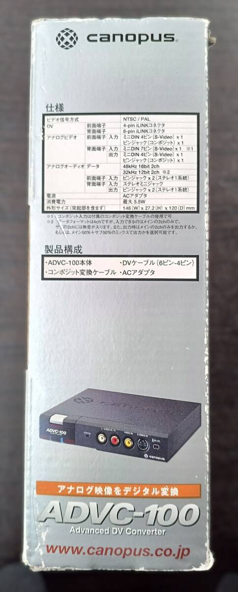 カノープスのDVコンバータです。通電確認済です。 写真にあります外箱、本体、DVケーブル(6ピン-4ピン)、コンポジット変換ケーブル、ACアダプタ、ユーザーマニュアルが含まれます。 中古品であることを十分にご留意の上、ご購入を検討ください。 |