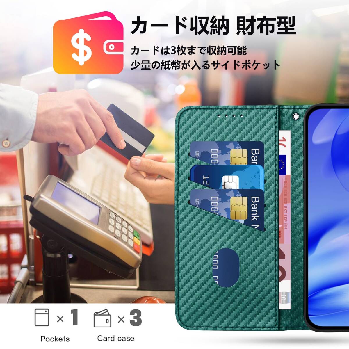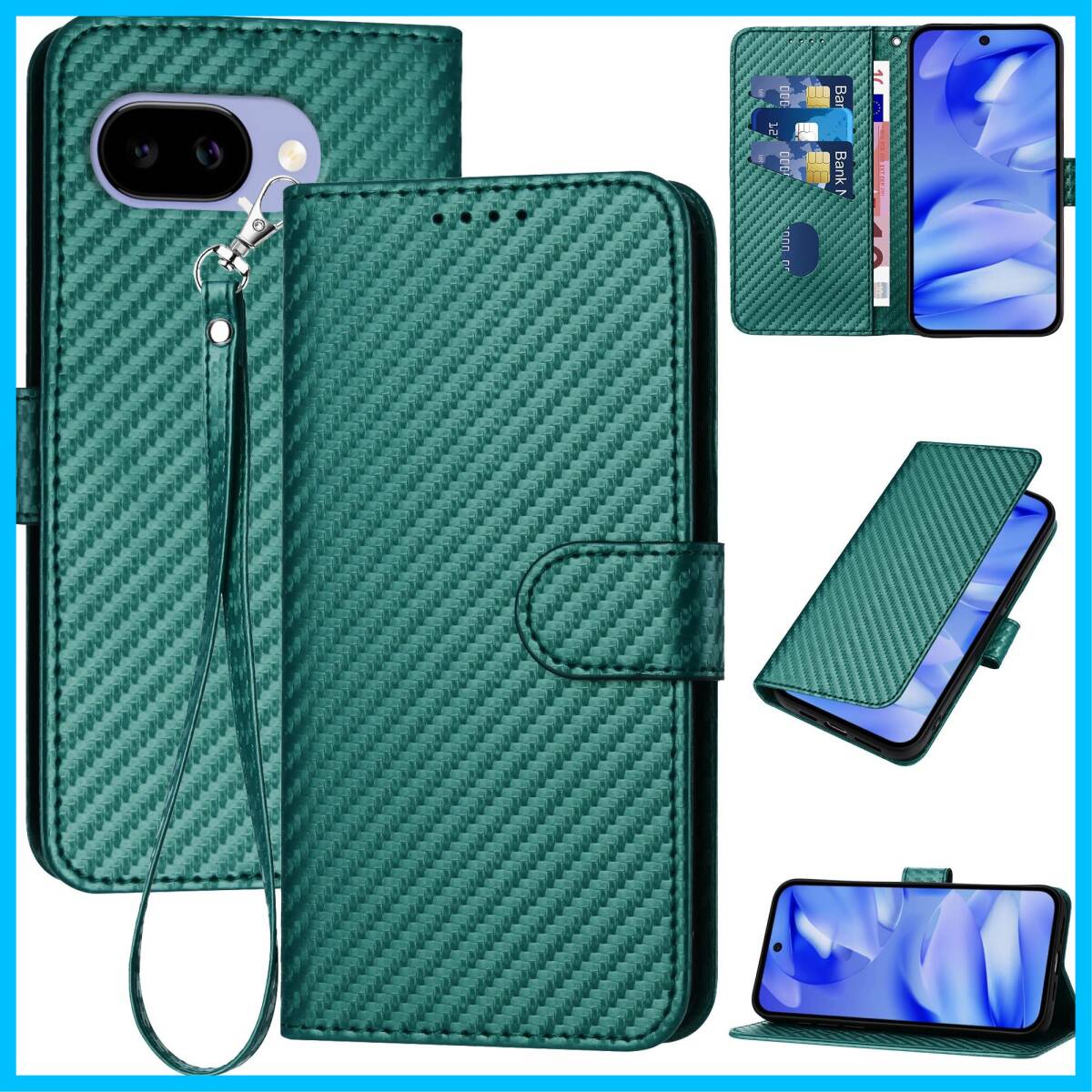 Google Pixel 9a 用 ケース 手帳型 グーグル ピクセル9a スマホケース Pixel9a 手帳型ケース ピクセル 9a 携帯カバー 炭素繊維ブレイドスタイル 肌触り良い 指紋防止 マグネット開閉式 スタンド機能 全面保護 財布型 軽量 - グリーン