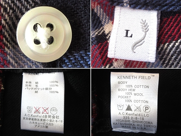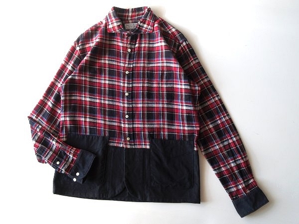 KENNETH FIELD ケネスフィールド 裾切替 ドッキング カッタウェイ チェックシャツ ネルシャツ ジャケット L 元ビームスプラス/BEAMS PLUS