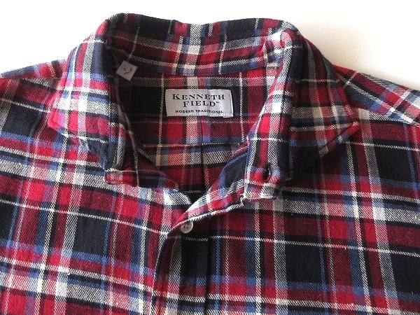 ケネスフィールドのシャツ。コットンのチェックネル生地を使用しております。襟はカッタウェイ。裾と袖先の生地の切り替えが魅力です。上質な素材使いと綺麗なシルエットで、様々なコーディネートにお使い頂ける一着です。
