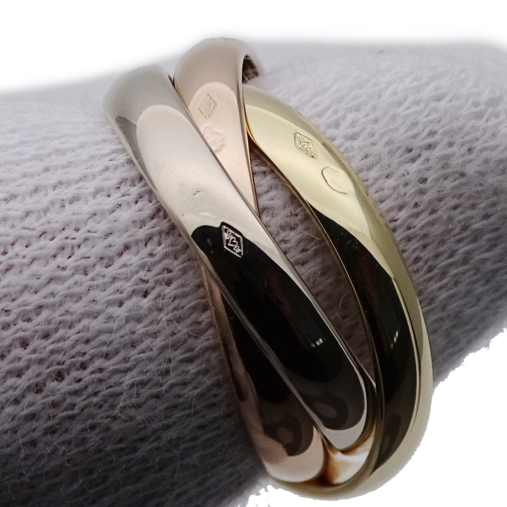 | 商品名 | カルティエ Cartier リング レディース ブランド 指輪 750PG 750WG 750YG トリニティ クラシックモデル #49 約9号 3連 磨き済み |