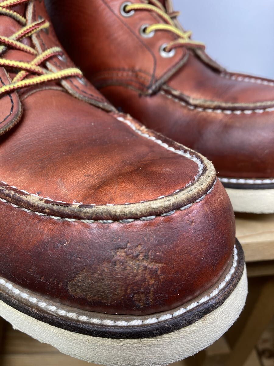 トゥ部の傷、右足の履き口の皮革の裂け、右足かかと部のステッチちょいホツレ等、