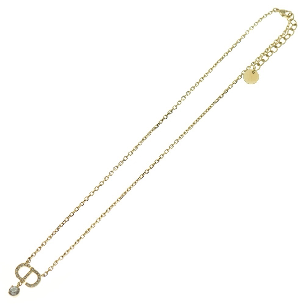 DIOR ディオール Petit CD プチ ライトストーン ロゴ チェーン ネックレス ゴールド レディース