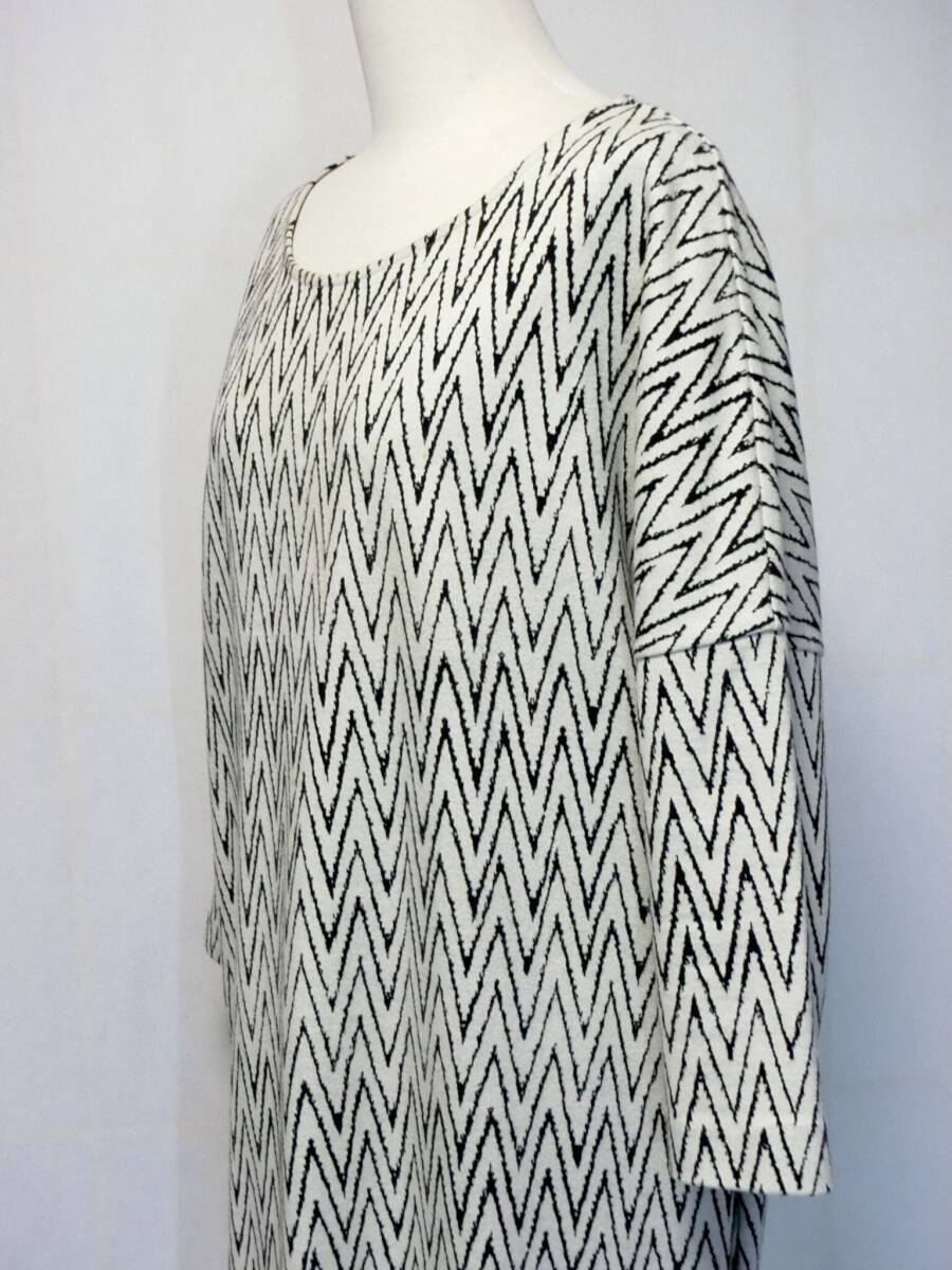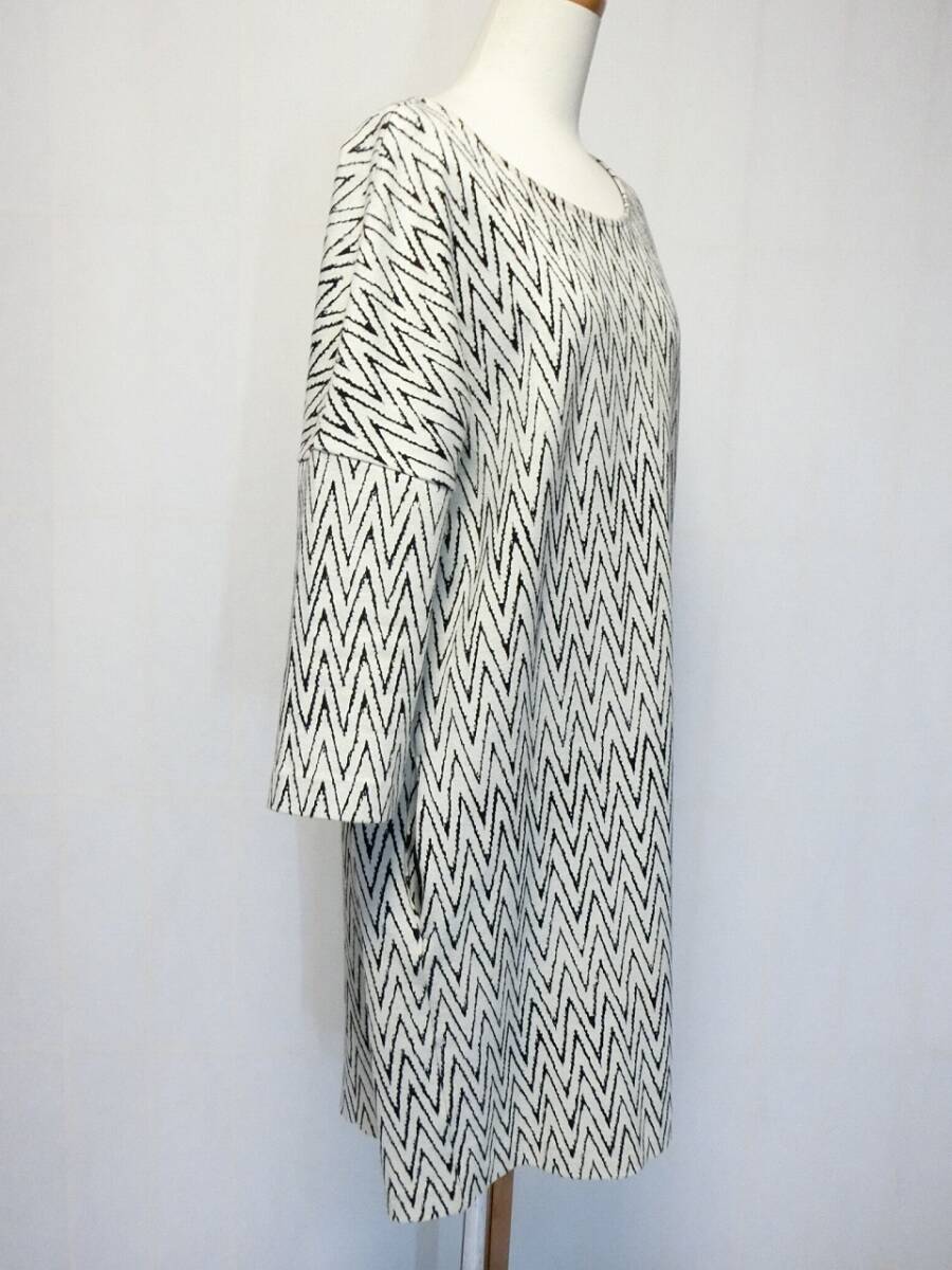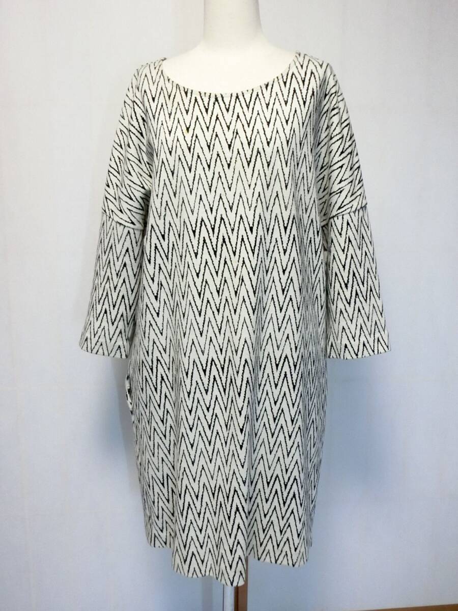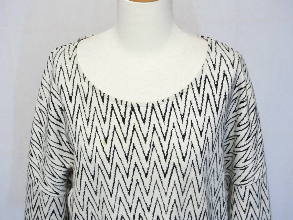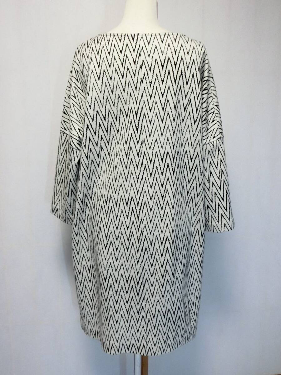 ★MAX&Co. マックス&コー オフホワイトに黒いジグザグ柄の9分袖ワンピース XL★