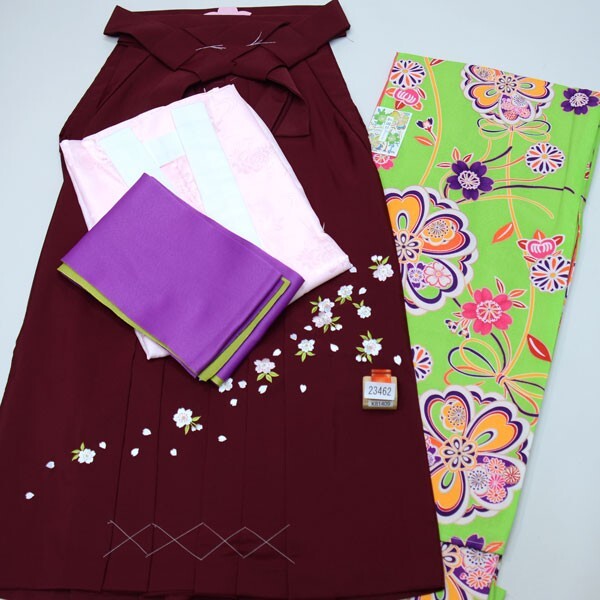 | 項目 | 二尺袖 着物袴フルセット ・二尺袖着物 ・二尺袖長襦袢(半襟付き) ・袴 ・袴下帯(浴衣帯にも使用できます。) |