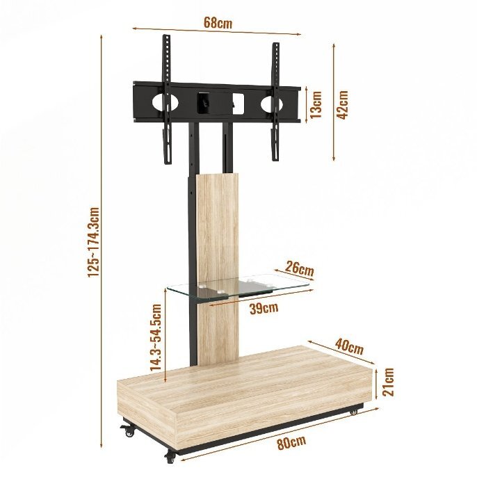 • 【製品仕様】幅80cm×奥行40cm×高さ125-174.3cm(調整可能)。鉄製フレームとMDFの頑丈な構造で高い耐荷重性を実現。4つのロック可能キャスター付きで、フローリングやカーペット上もスムーズに移動可能。全方向ロック機能で安定性を確保。