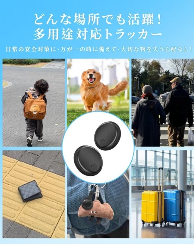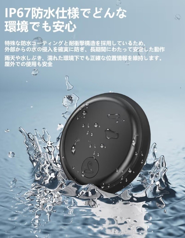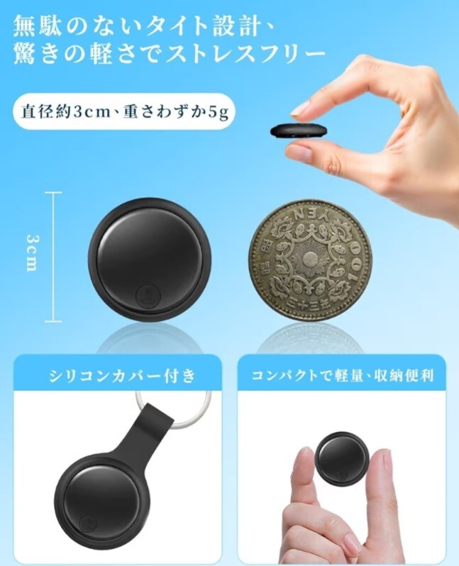 【超小型&軽量デザインでどこへでも持ち運び可能】直径約3cm、重量わずか8gのコンパクトな設計により、財布、鍵、バッグ、ペットの首輪など、さまざまなアイテムに取り付けることができます。スタイリッシュなメタル仕上げを採用しており、アクセサリー感覚で携帯できるため、外出先でも常に安心して追跡が可能です。