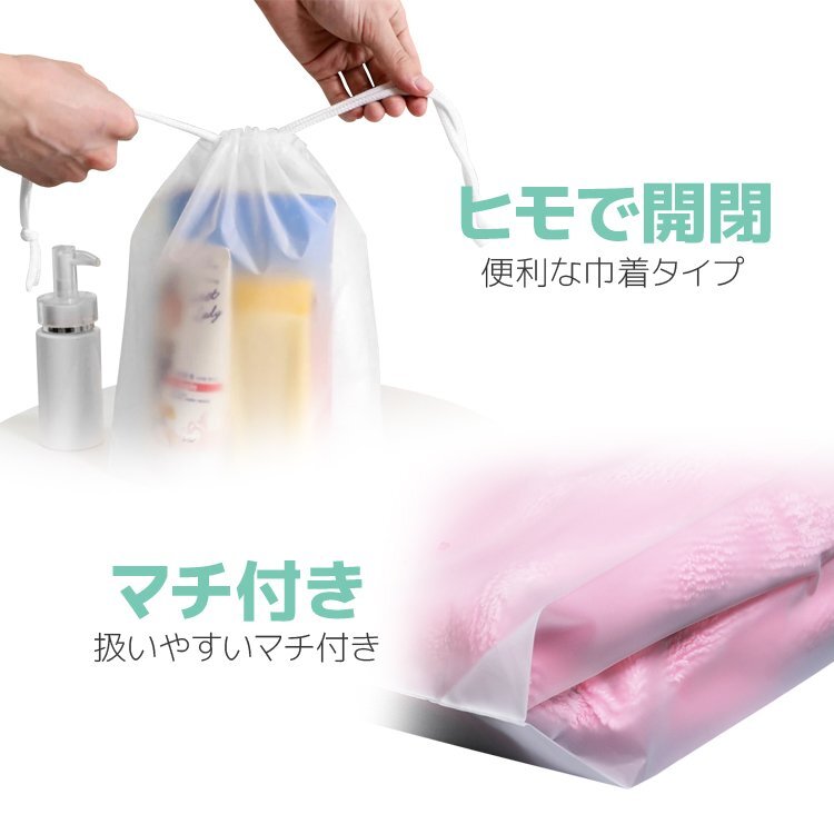 中身が確認しやすい半透明のEVAビニール素材の巾着ポーチのセットです。