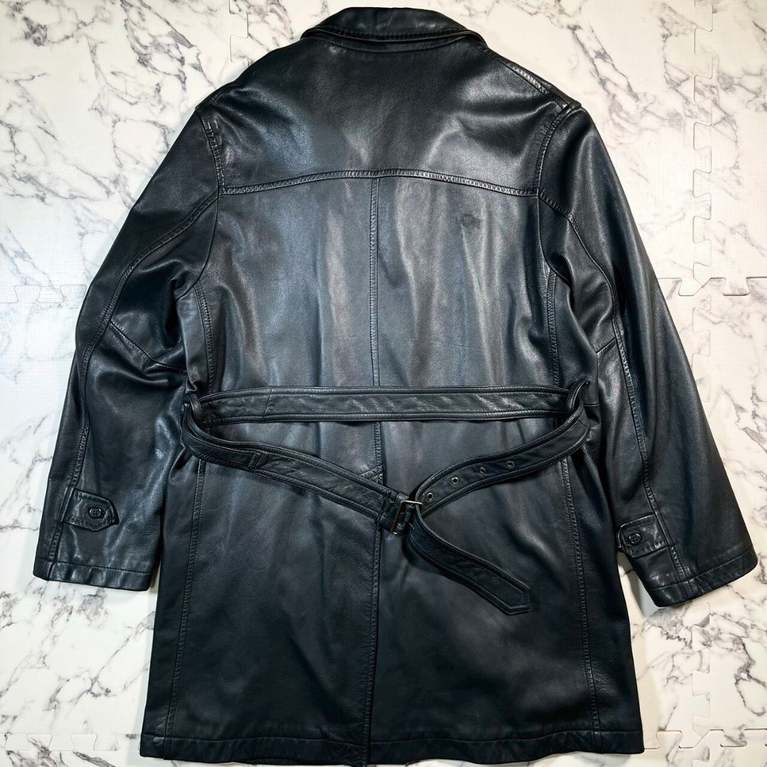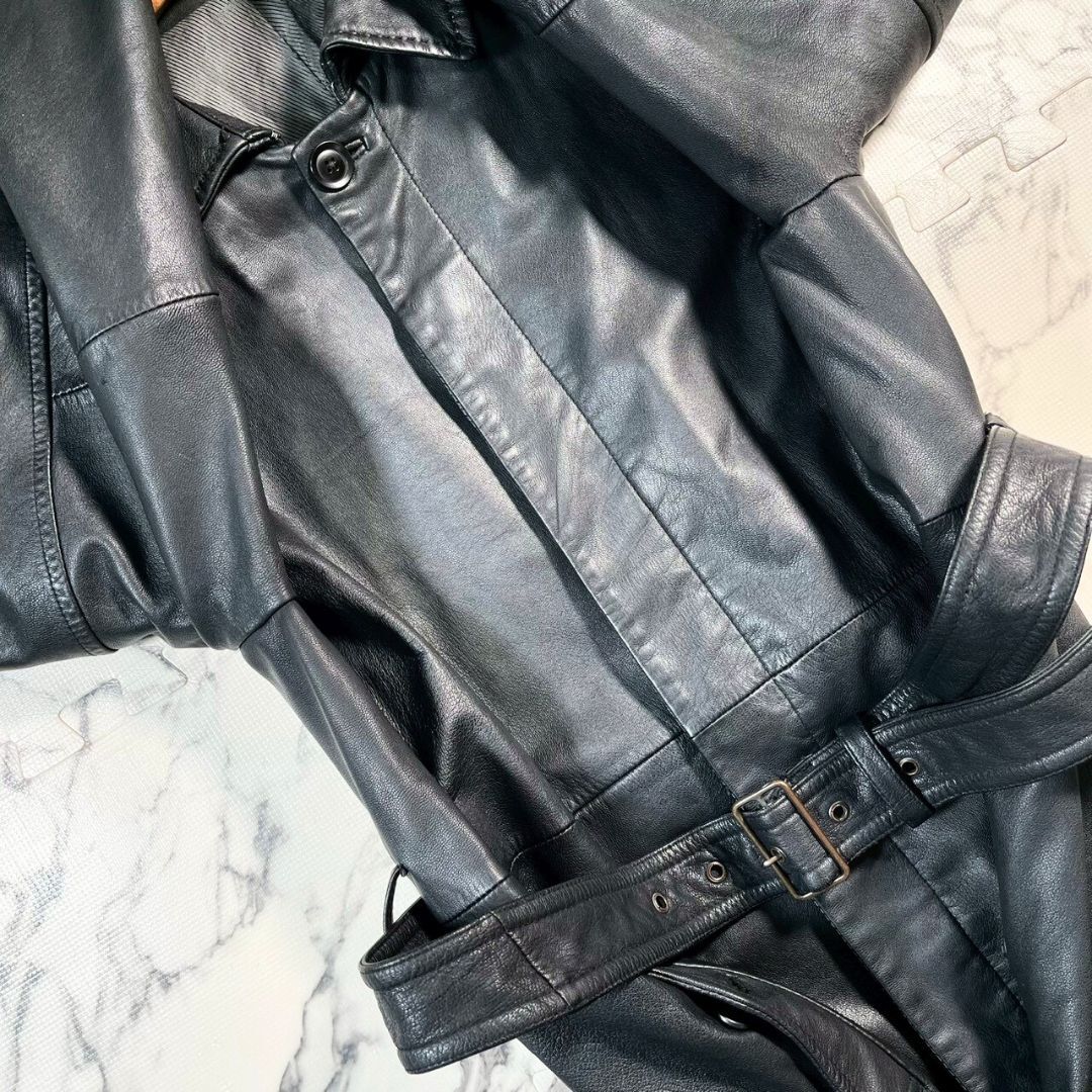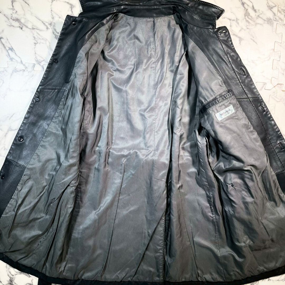 【圧倒的存在感!!】(L)●MITSUMINE オールレザー ステンカラーコート 山羊革 ミツミネ ゴートレザー ベルト ロング ブラック 黒 メンズ