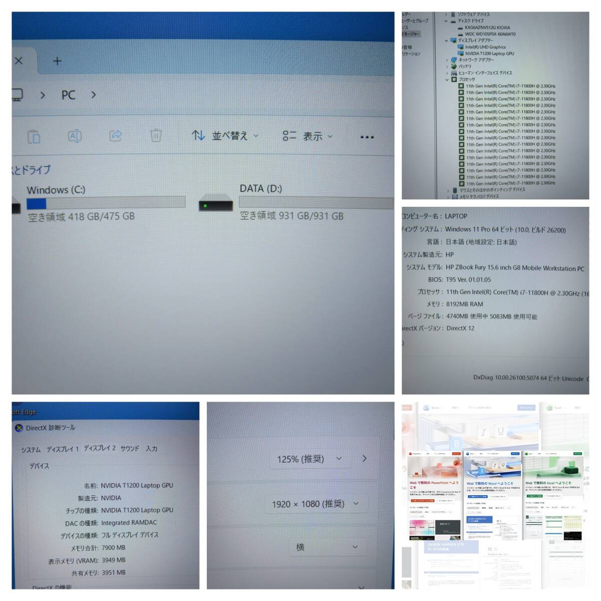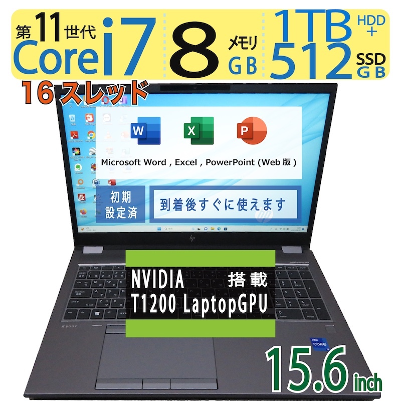 【ワークステーション】◆HP ZBook Fury 15.6inch G8 / 15.6型 ◆ i7-11800H / 512GB SSD+ 1TB HDD / 8GB◆ NVIDIA T1200 ◆win11 /Office