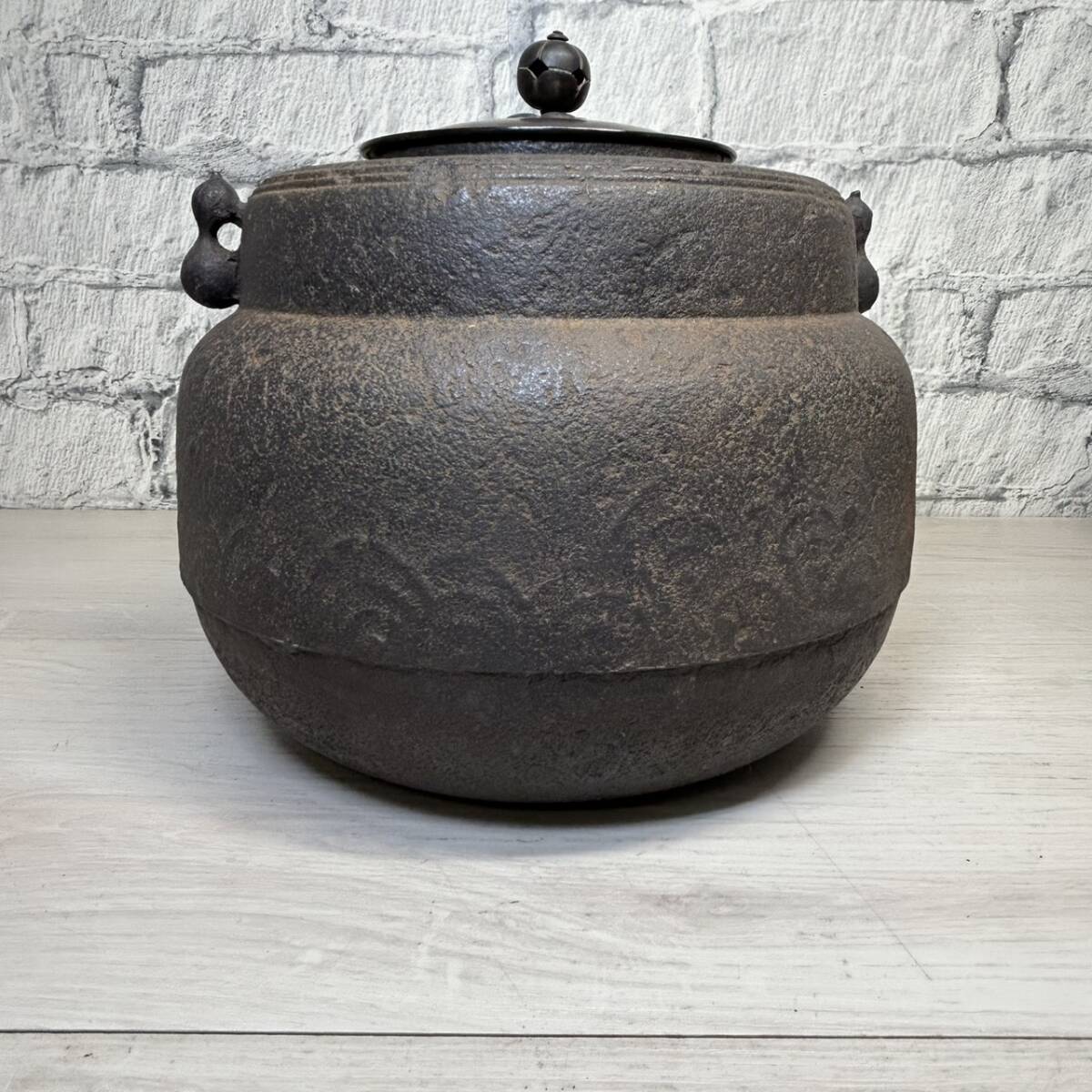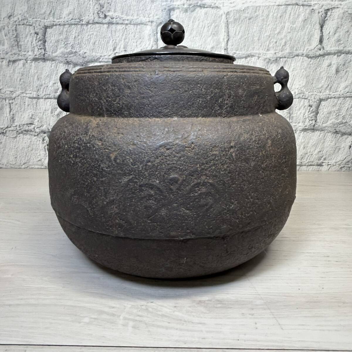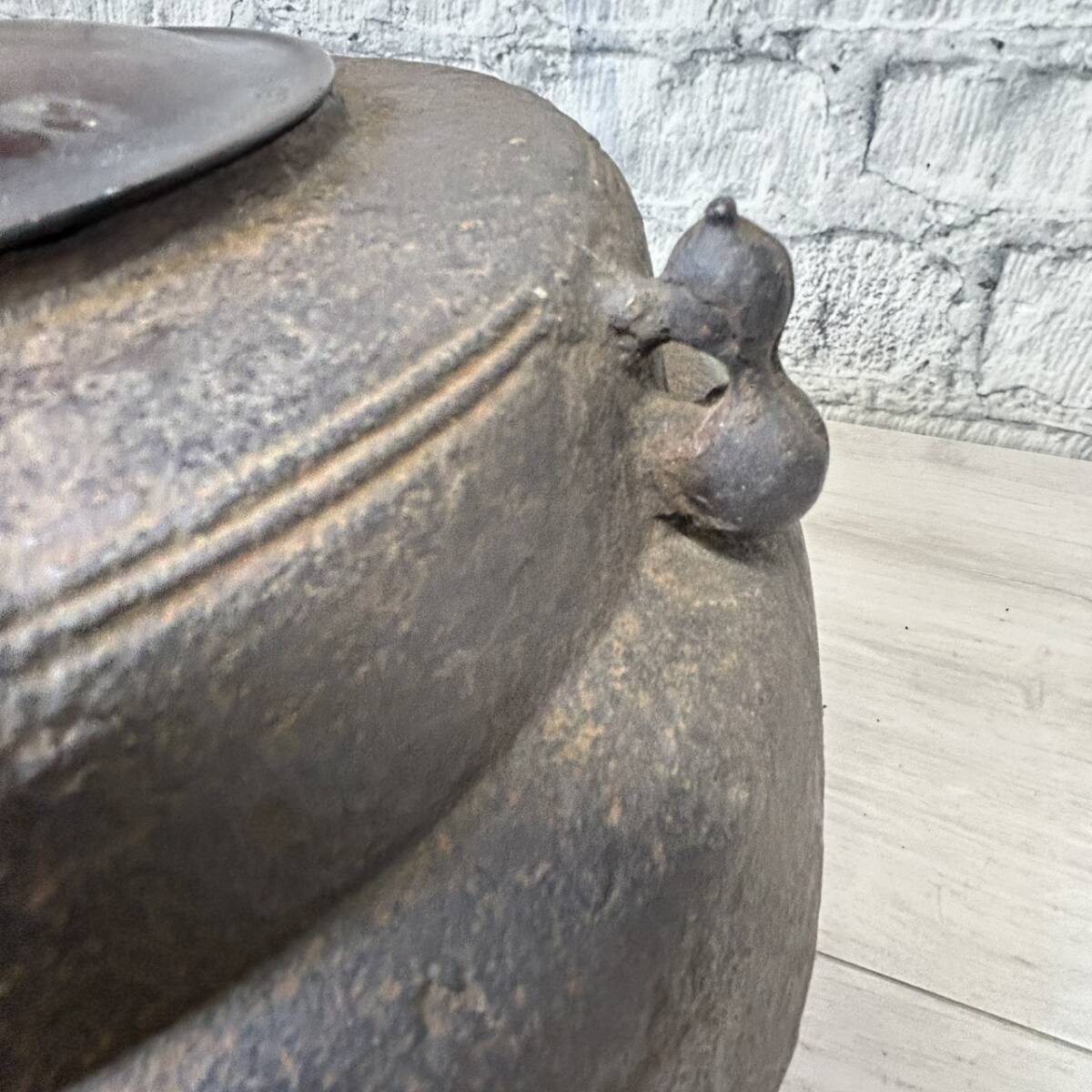 【YH-4101】長期保管品 鉄製 瓢箪形 瓢箪文 耳環なし 鉄釜 茶釜 茶道具 銘無し 当時物 使用感有