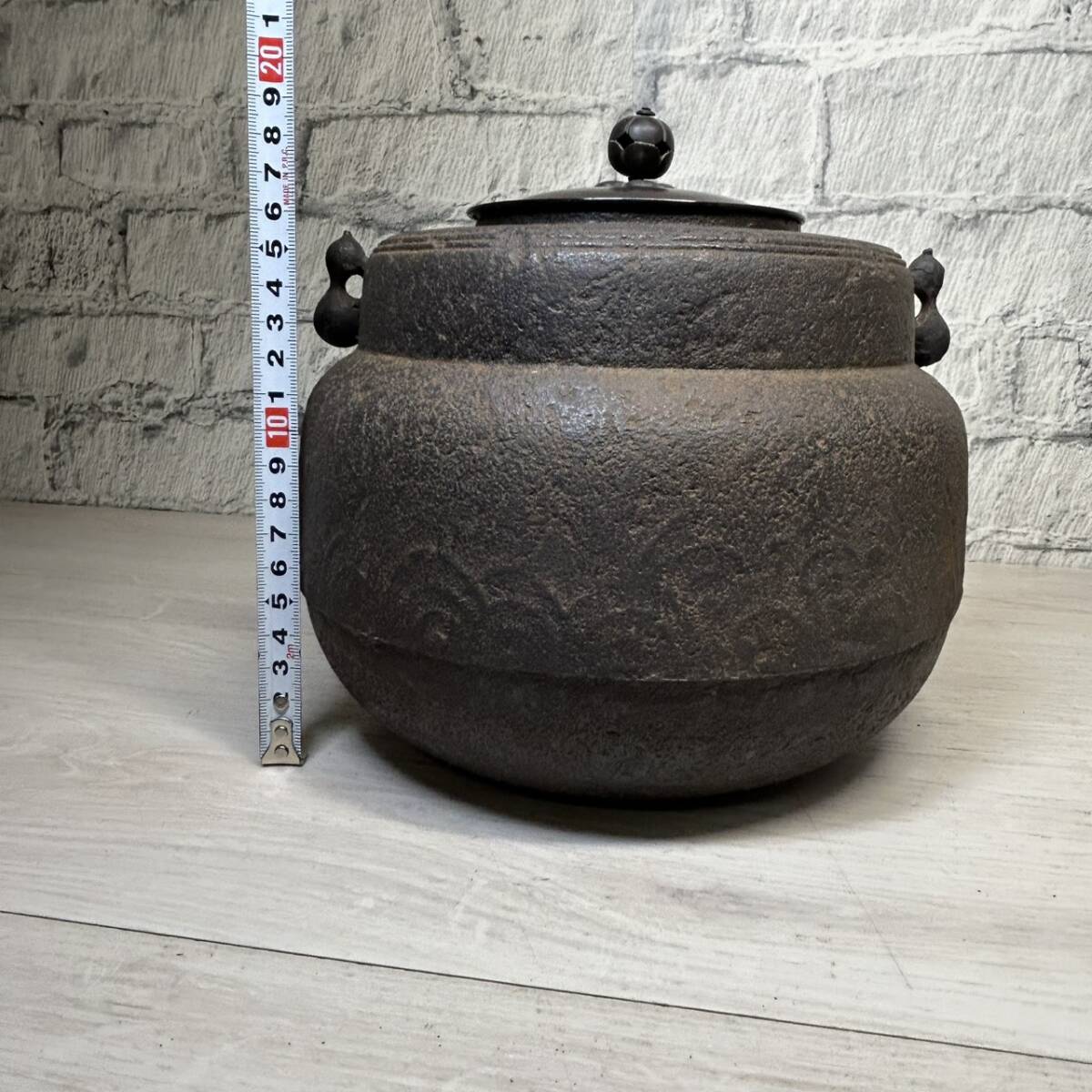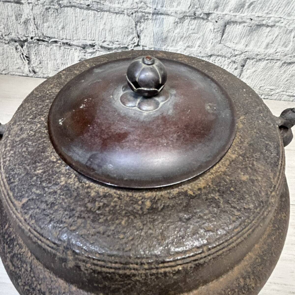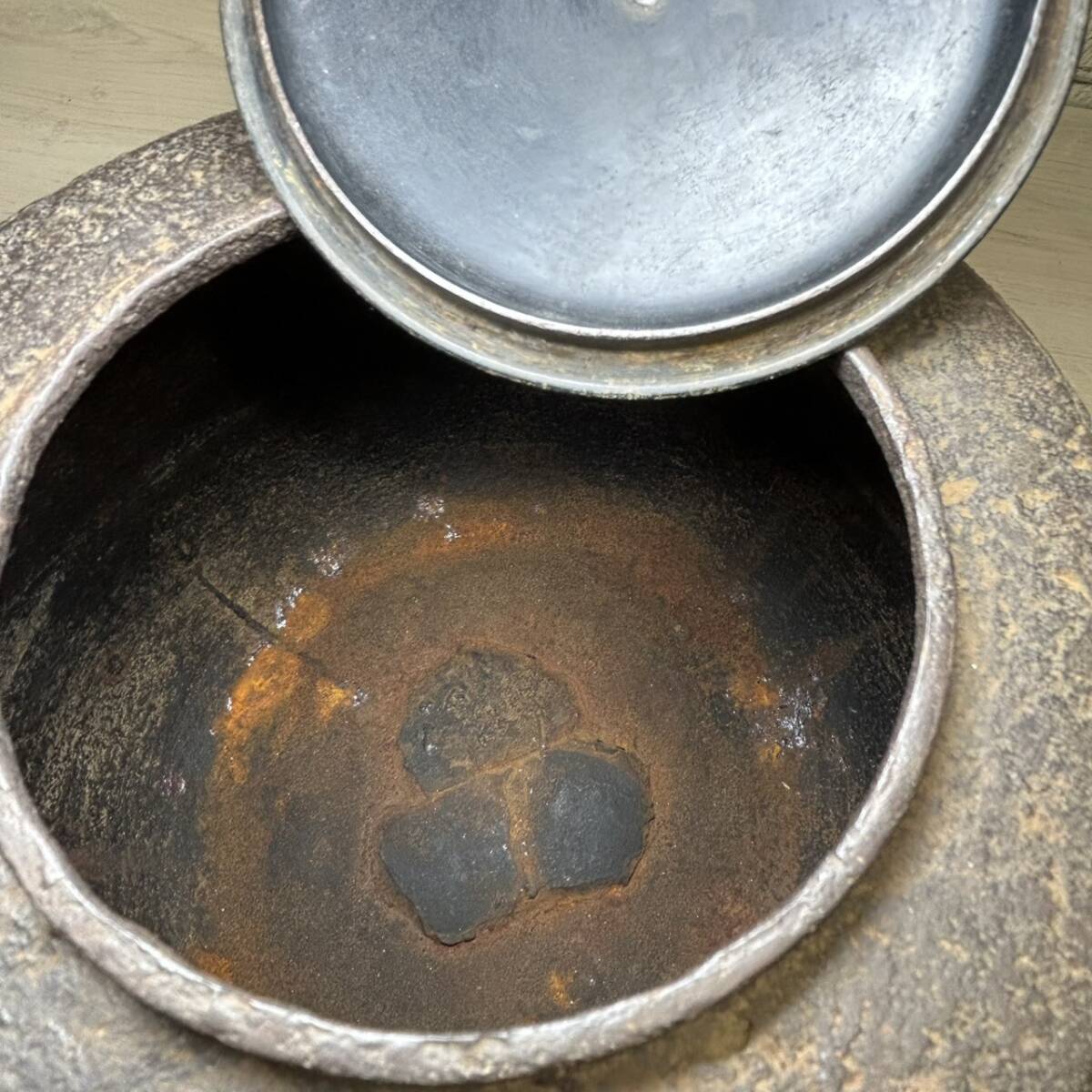 【YH-4101】長期保管品 鉄製 瓢箪形 瓢箪文 耳環なし 鉄釜 茶釜 茶道具 銘無し 当時物 使用感有