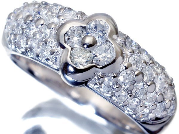 豪華な輝き放つ良質天然ダイヤモンド総計1.00ctを素敵に宝飾した、高級Pt900リングを1円から特別大放出致します!