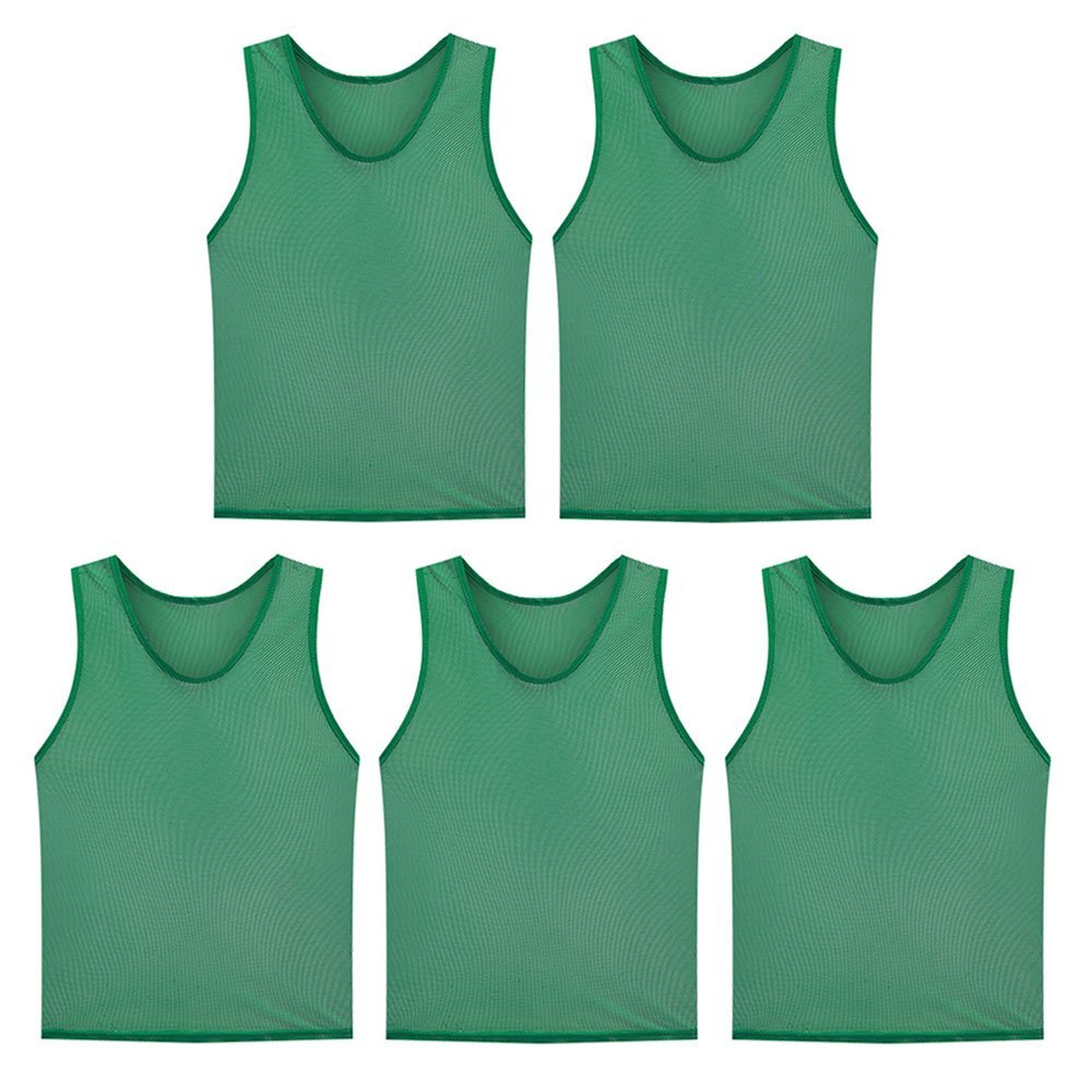 ◆ゼッケンベスト 5枚セット ビブス メッシュ 無地 サッカー バスケ フットサル 運動会 リレー スポーツ イベント ボランティア チーム分け 色分け 子ども用 大人用【大人用グリーン】BIBVS05S