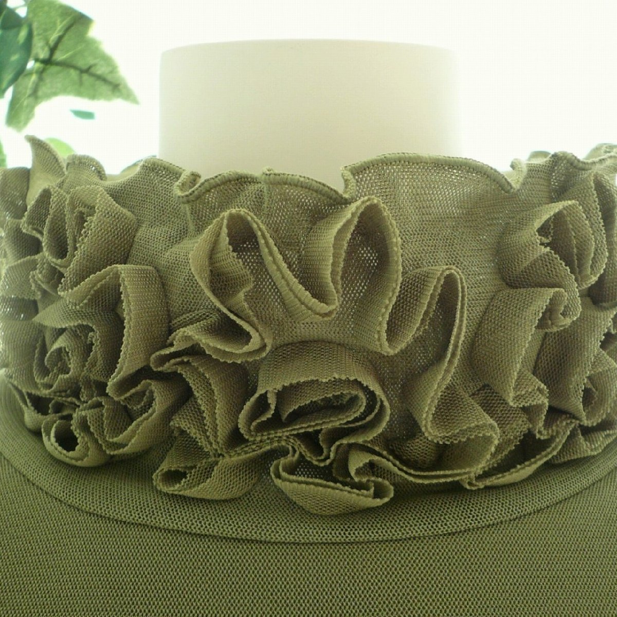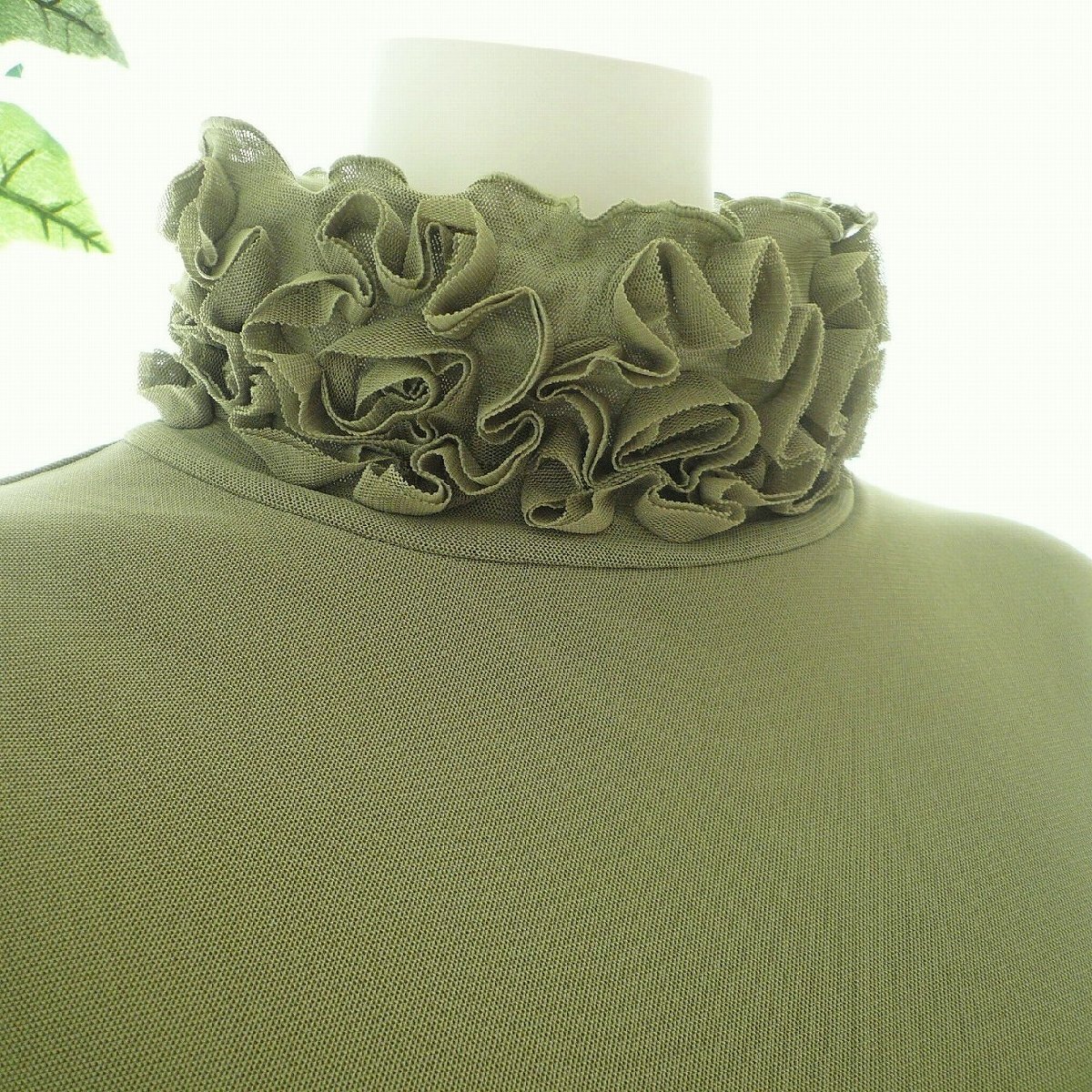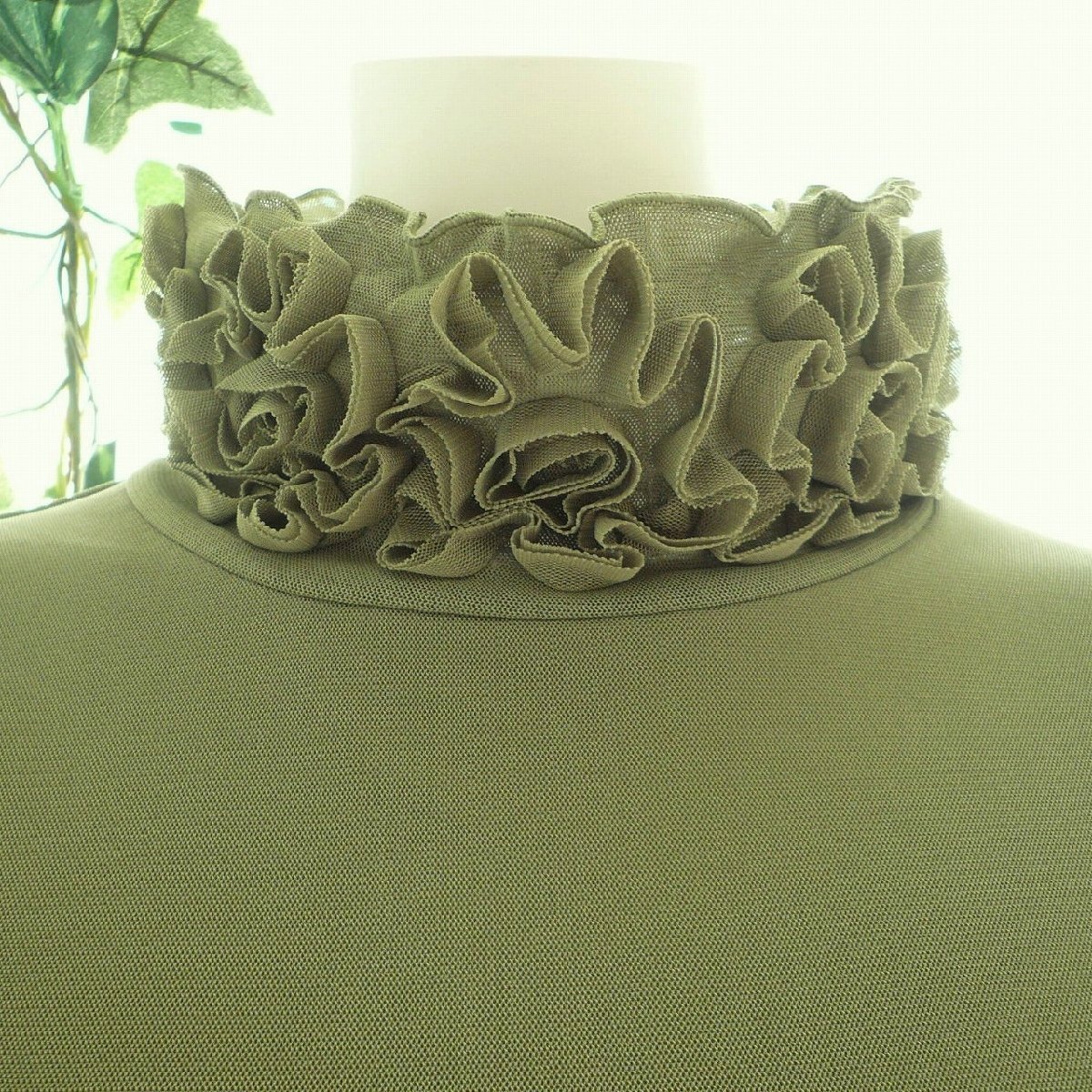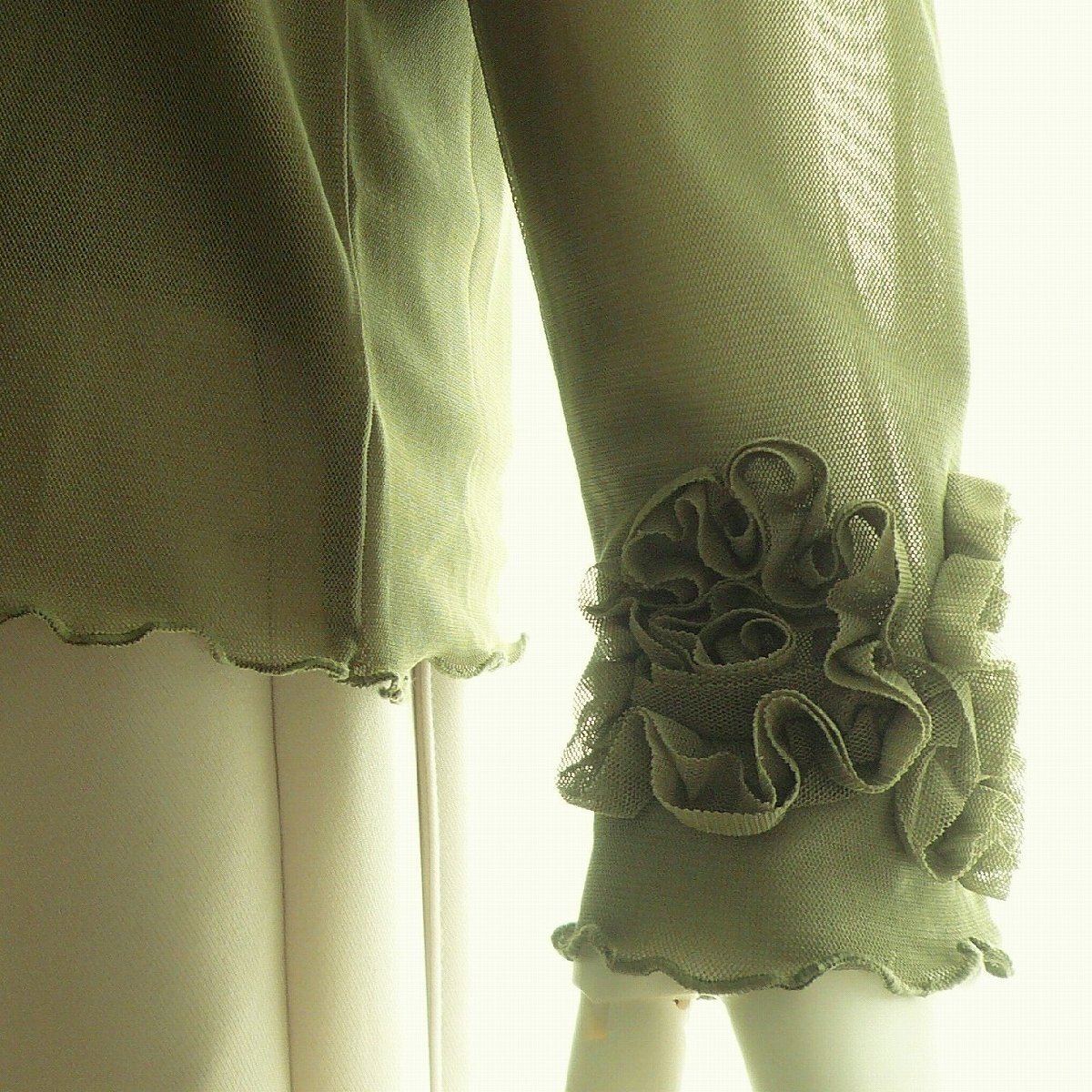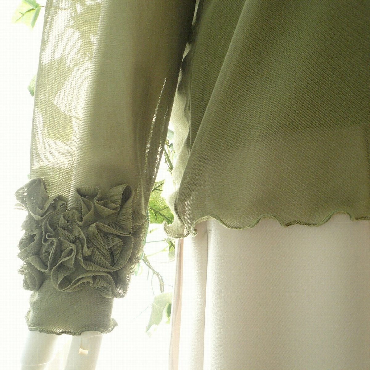 新品 9622 ML 花モチーフ メッシュ ハイネック カットソー ブラウス くすみ緑 袖花モチーフ レディース ストレッチ 上質