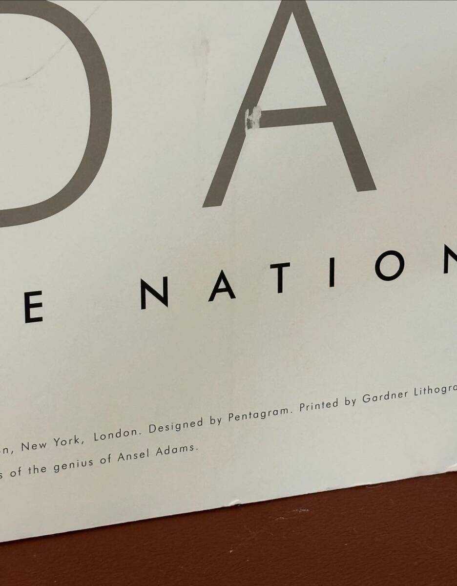 モノクロームの詩人Ansel Adamsによる代表作「Moon and Half Dome」の大判アートパネル。ヨセミテ国立公園の雄大な岩山と静寂な月を捉えたモノクロームの名作です。Pentagramデザイン、Authorized Editionのエンボス入りで格式を感じさせる一枚。空間を引き締めるアートパネルです。店舗什器としてもオススメしたい逸品。(ヨレや傷、汚れ有り。壁掛け用の紐は付いておりません)