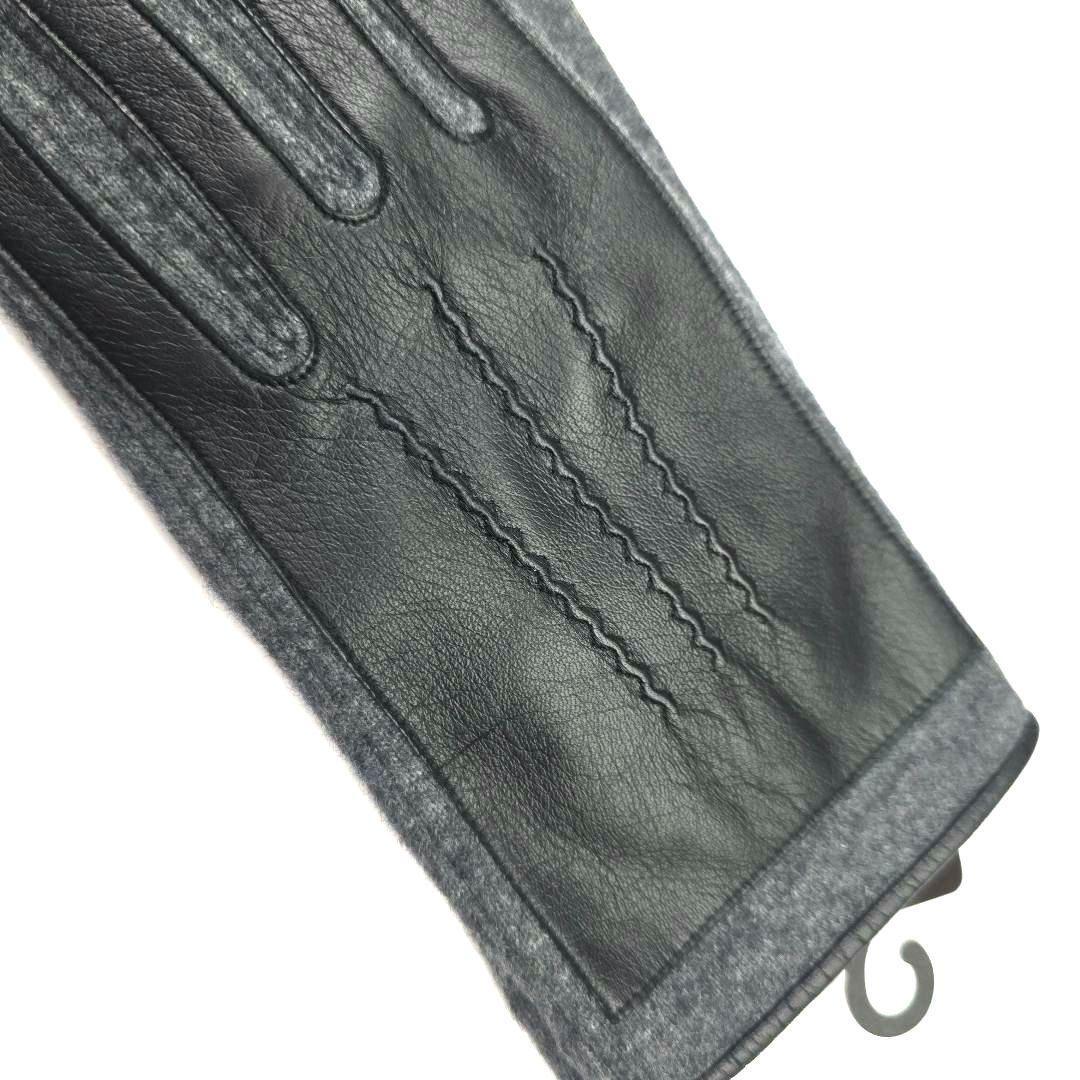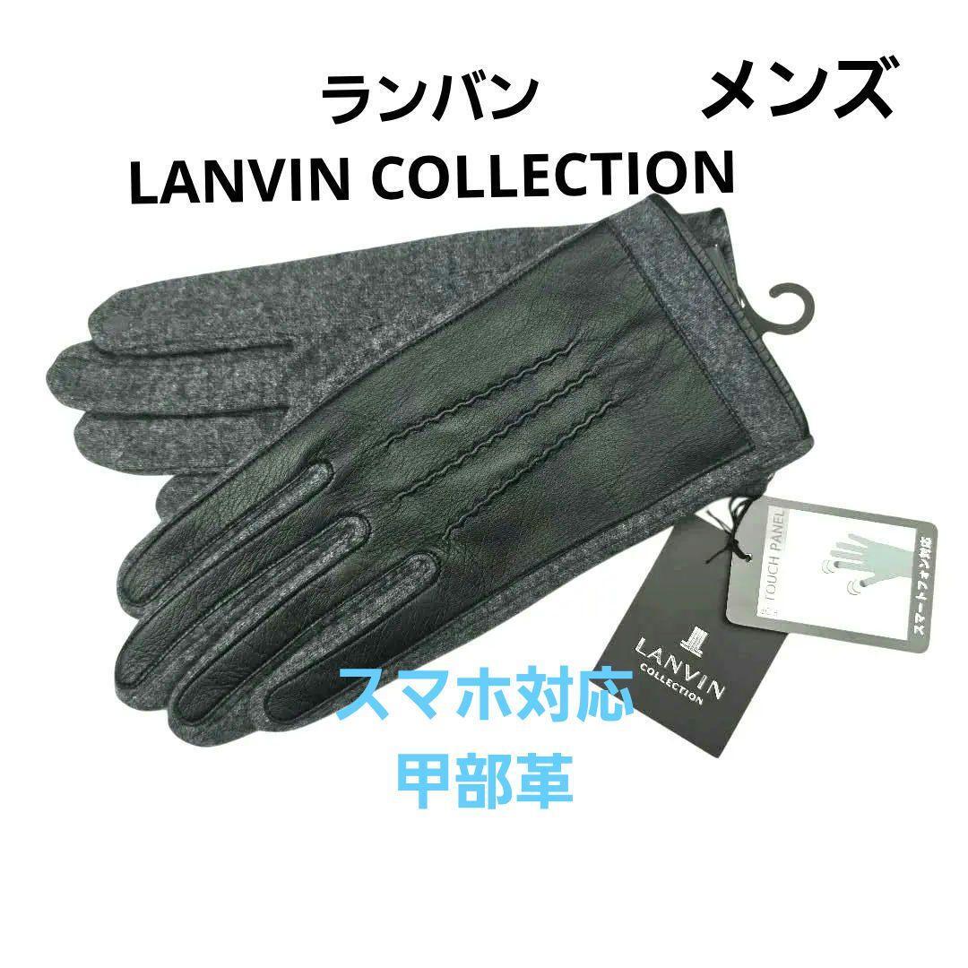 ●ランバンLANVIN COLLECTIONのスマホ対応カシミヤ混メンズ手袋、新品です。 素材は本体:ウール、ナイロン、カシミヤ。甲部:羊革。パイピング:羊革。表示寸法:23-24㎝。実寸で手首から中指の先まで約23㎝。色はブラック+グレー。正規ライセンス会社扱い品です。