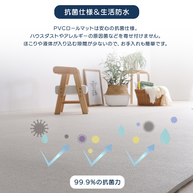 継ぎ目がない PVCロールマット ワイドショート(140×200cm) ベージュ