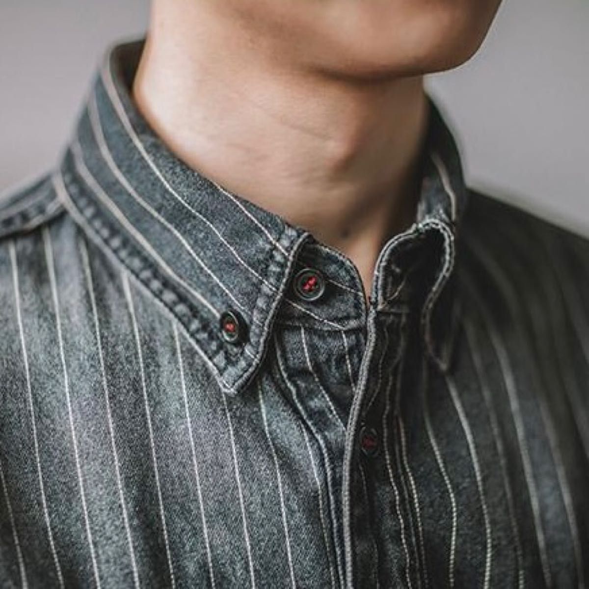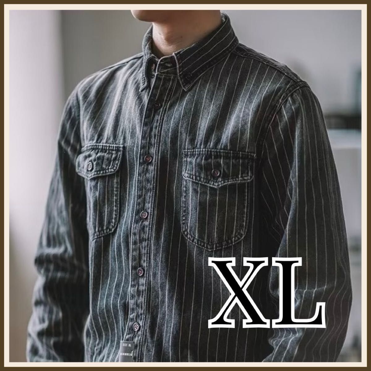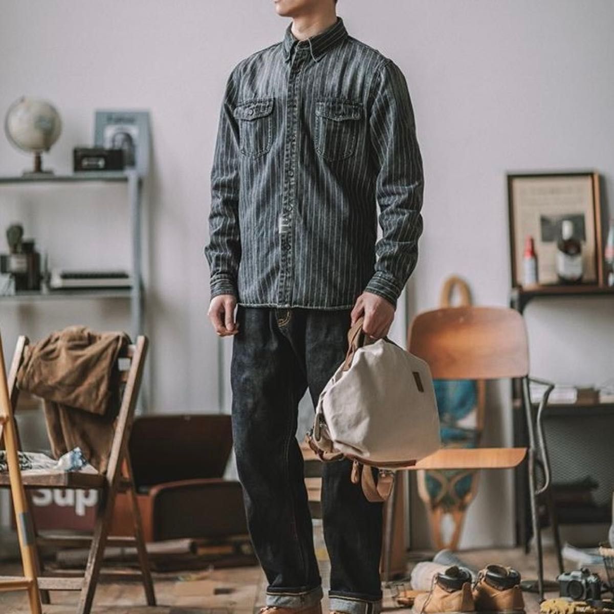 ブラックのデニムにホワイトのストライプが映える、ヴィンテージ風ウォバッシュシャツです。