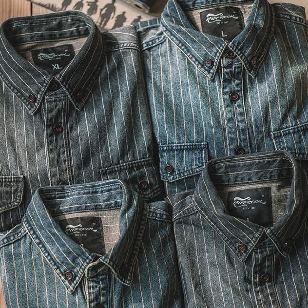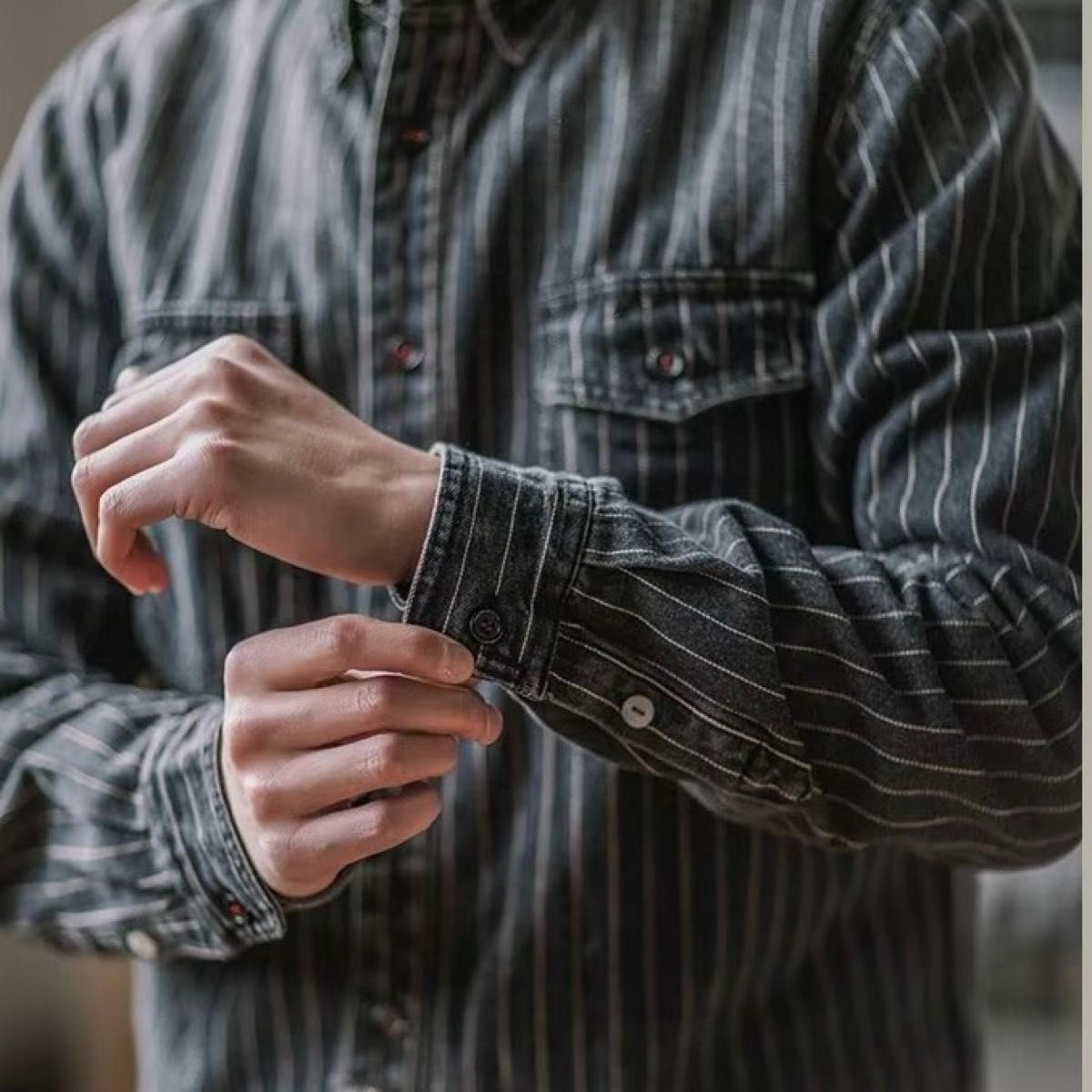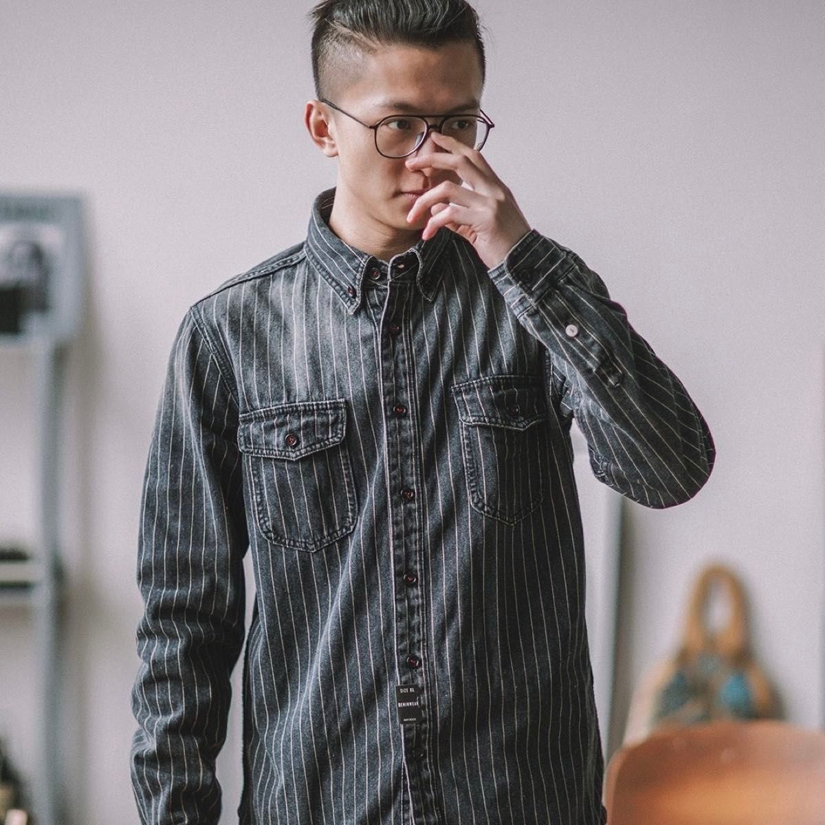 ブラックのデニムにホワイトのストライプが映える、ヴィンテージ風ウォバッシュシャツです。
