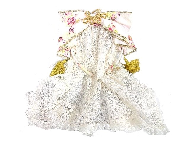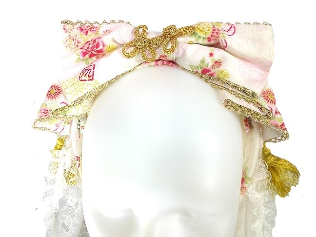 花鹿の万華鏡シリーズのハイウエストジャンパースカート、カチューシャ、おだんごカバーの3点セットです。神の御使いとされる鹿と咲き乱れる花々、小槌など古来より縁起の良いとされるモチーフを取り入れた和柄生地にゴールドレースをあしらったジャンパースカートです。2つの水引風リボンブローチ、腰リボン紐は取外し可能です。サイズは身幅45 肩からの着丈100.5(cm)。て定価JSK36080円 カチューシャ6380円 お団子カバー6600円。状態は若干の使用感程度。15316(85)20251108