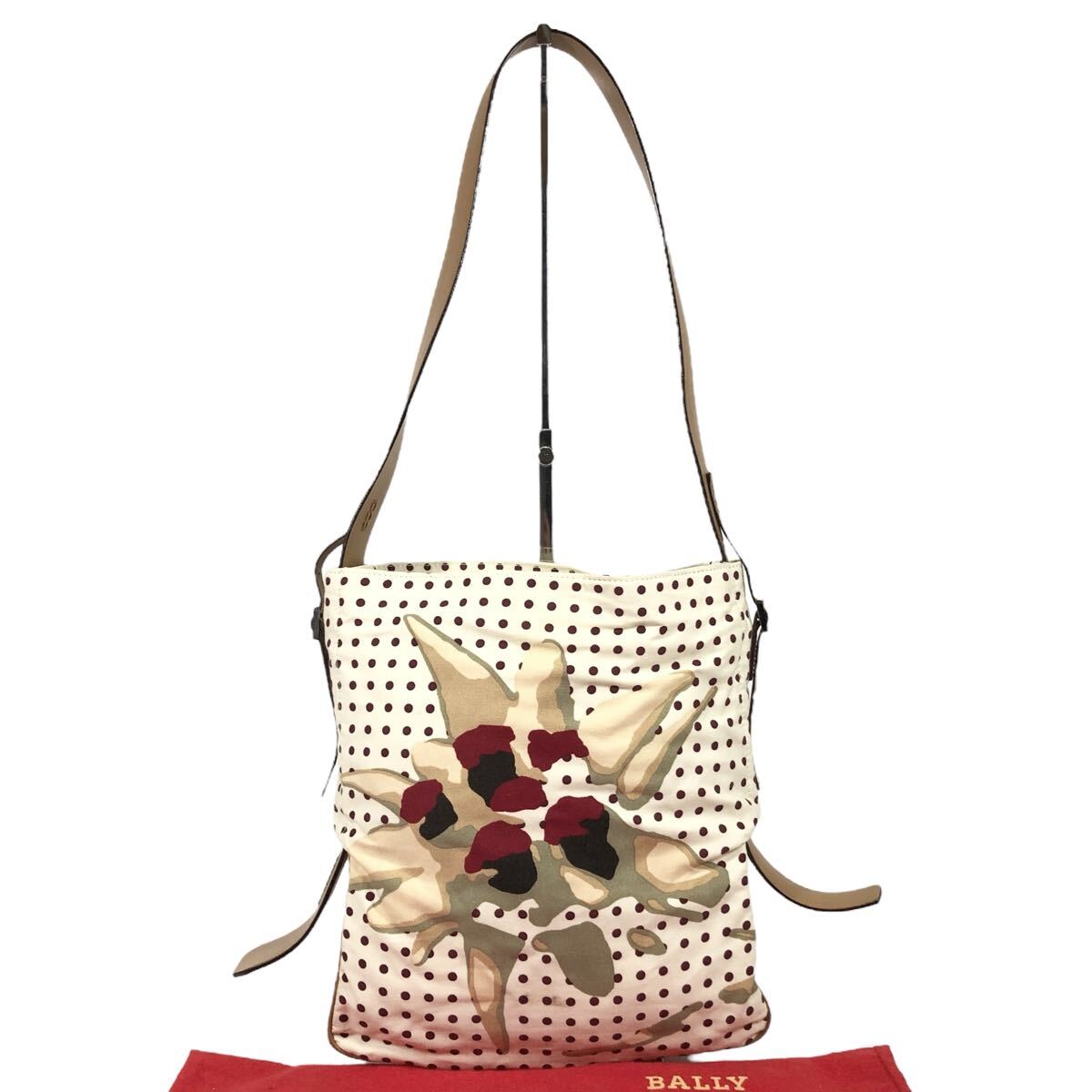 【バリー】本物 BALLY ワンショルダーバッグ B金具 ドット柄 ショルダーバッグ 肩掛け キャンバス×レザー 女性用 レディース 伊製 保存袋