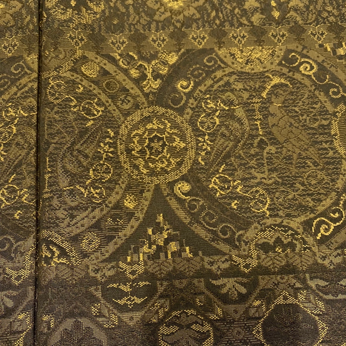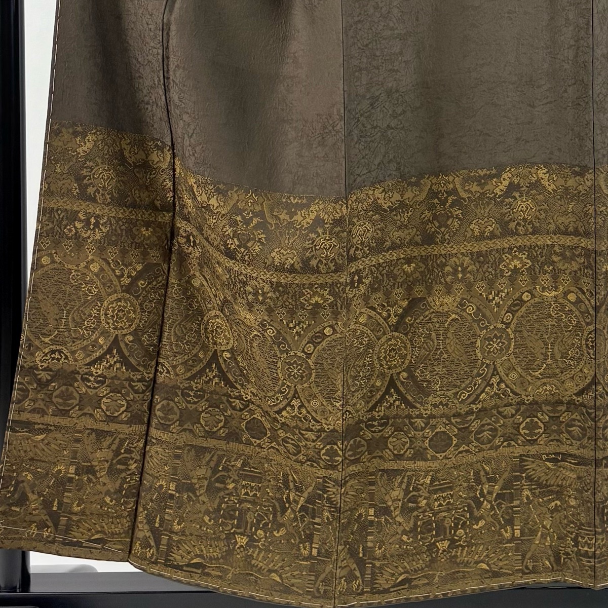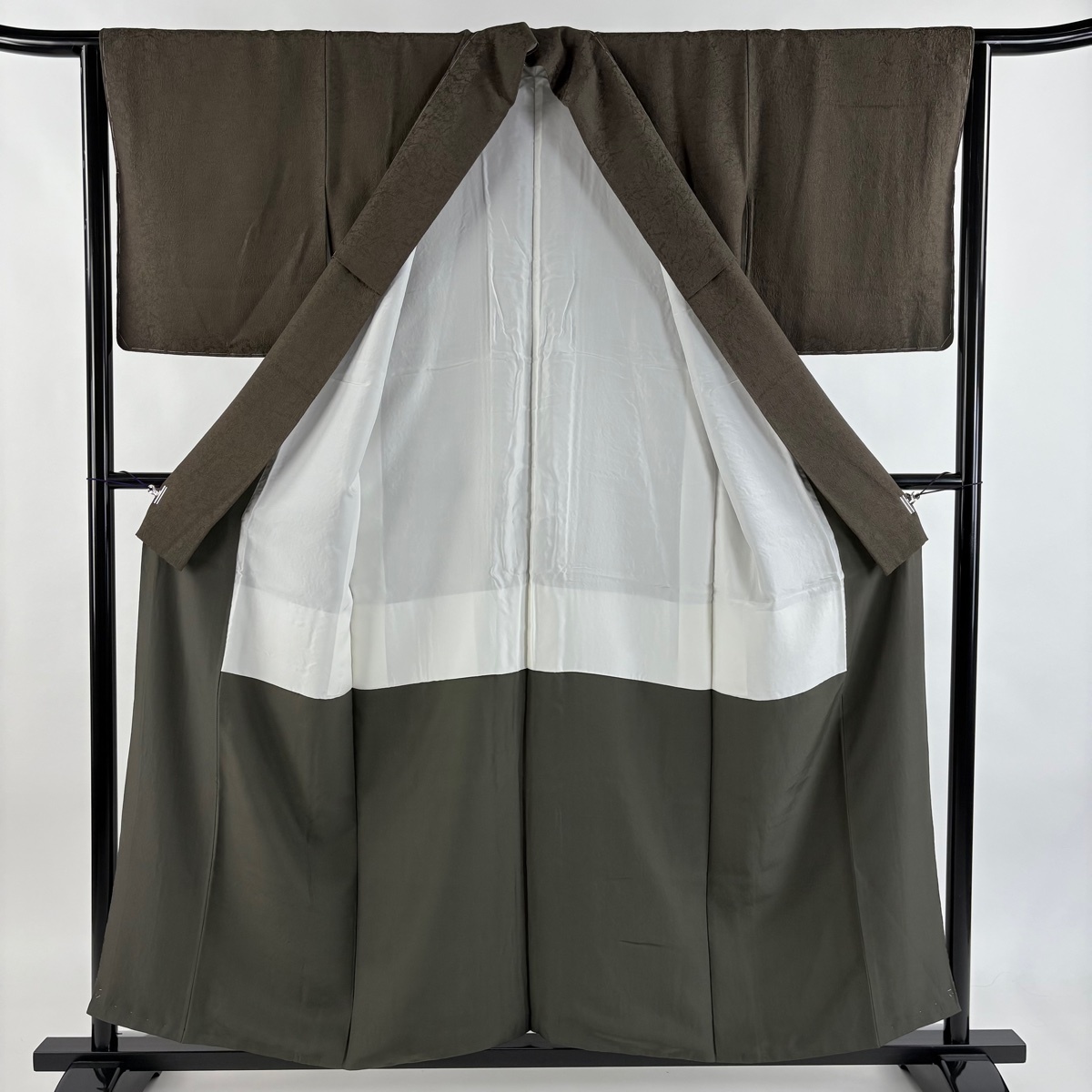 | 付下げ 美品 名品 動物 地紋 茶緑色 袷 身丈157 裄丈65 M 正絹 【中古】 |