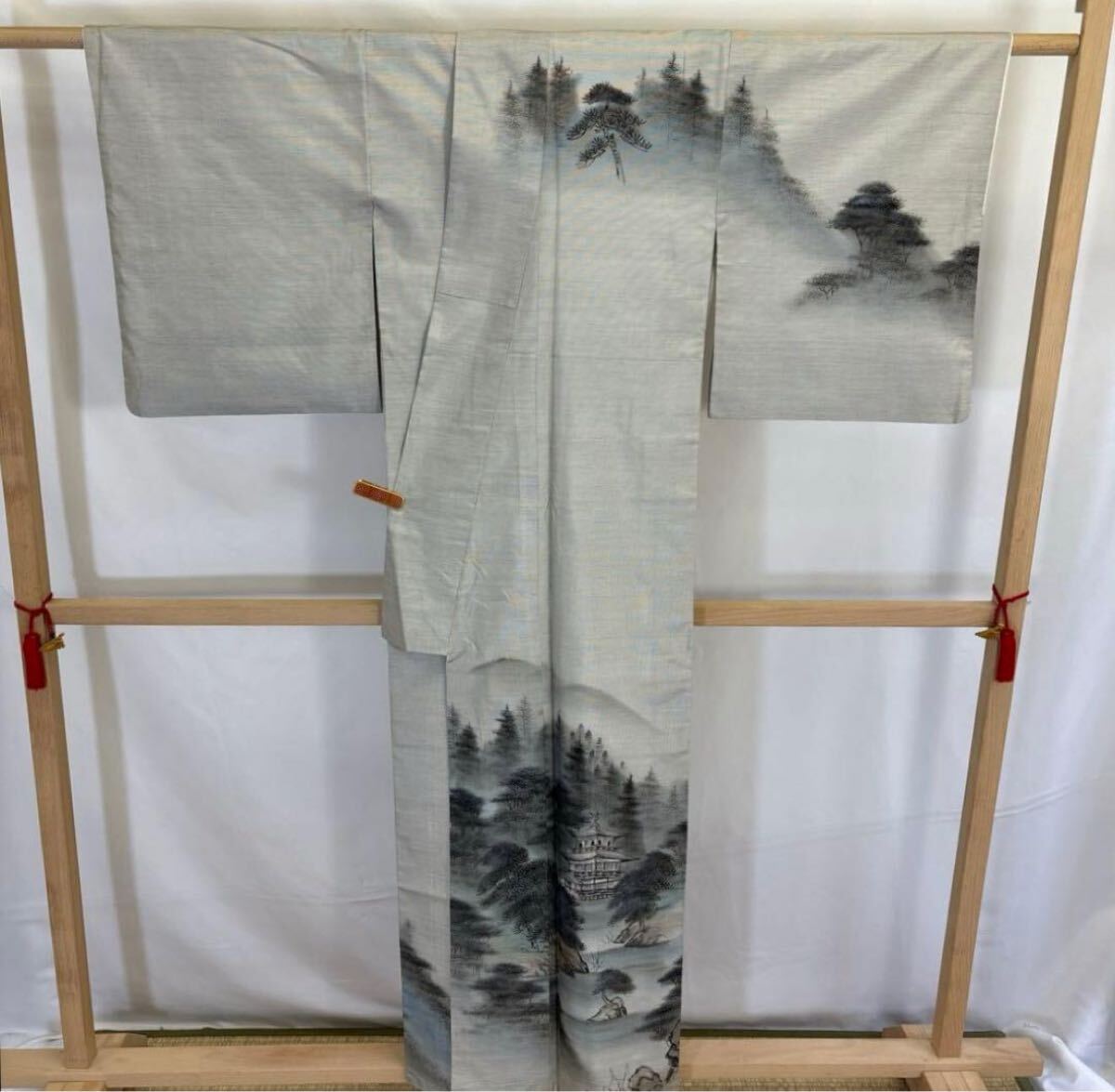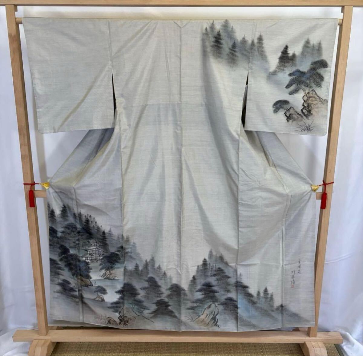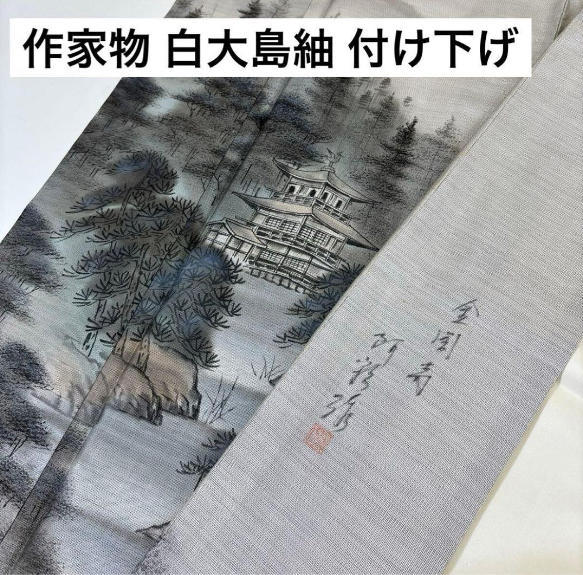 【楓】本場縞大島紬 作家者 金閣寺 付下げ訪問着 KKk-3343