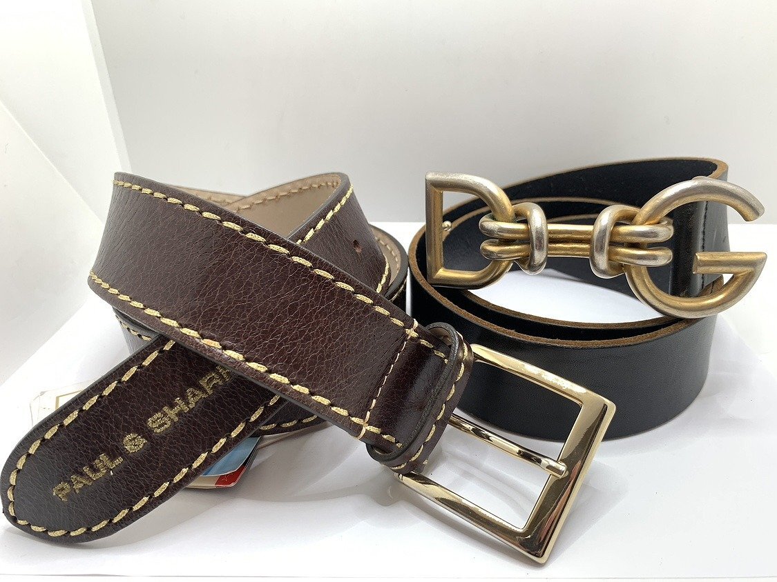 | 型番・製造番号・サイズ | ①【ブランド】DOLCE&GABBANA[ドルチェ&ガッバーナ] 【Model】D&Gバックル レザーベルト 【カラー】ブラック×ゴールド金具 【Size】記載:85cm/34inch 全長:約100㎝ 幅:約4㎝ バックル:約12×5㎝ ウエスト74~89.5cm 【仕様】3cm弱間隔に6つ穴 【生産国】MADE IN ITALY 【主な状態】バックルにメッキ色落ちや取り切れない汚れ、レザーにスレやキズ ②【ブランド】PAUL&SHARK[ポール&シャーク] 【Model】 レザーベルト [RN 98658-CA 35089] 【カラー】ブラウン×ゴールド金具 【Size】記載:38 全長:約93㎝ 幅:約4㎝ バックル:約5.5×5㎝ ウエスト66~76cm 【仕様】2cm間隔に5つ穴 【生産国】MADE IN ITALY 【主な状態】未使用タグ付き保管品 バックルに若干の色落ち ※ (素人採寸・測量ですので多少の誤差はご了承くださいませ) |