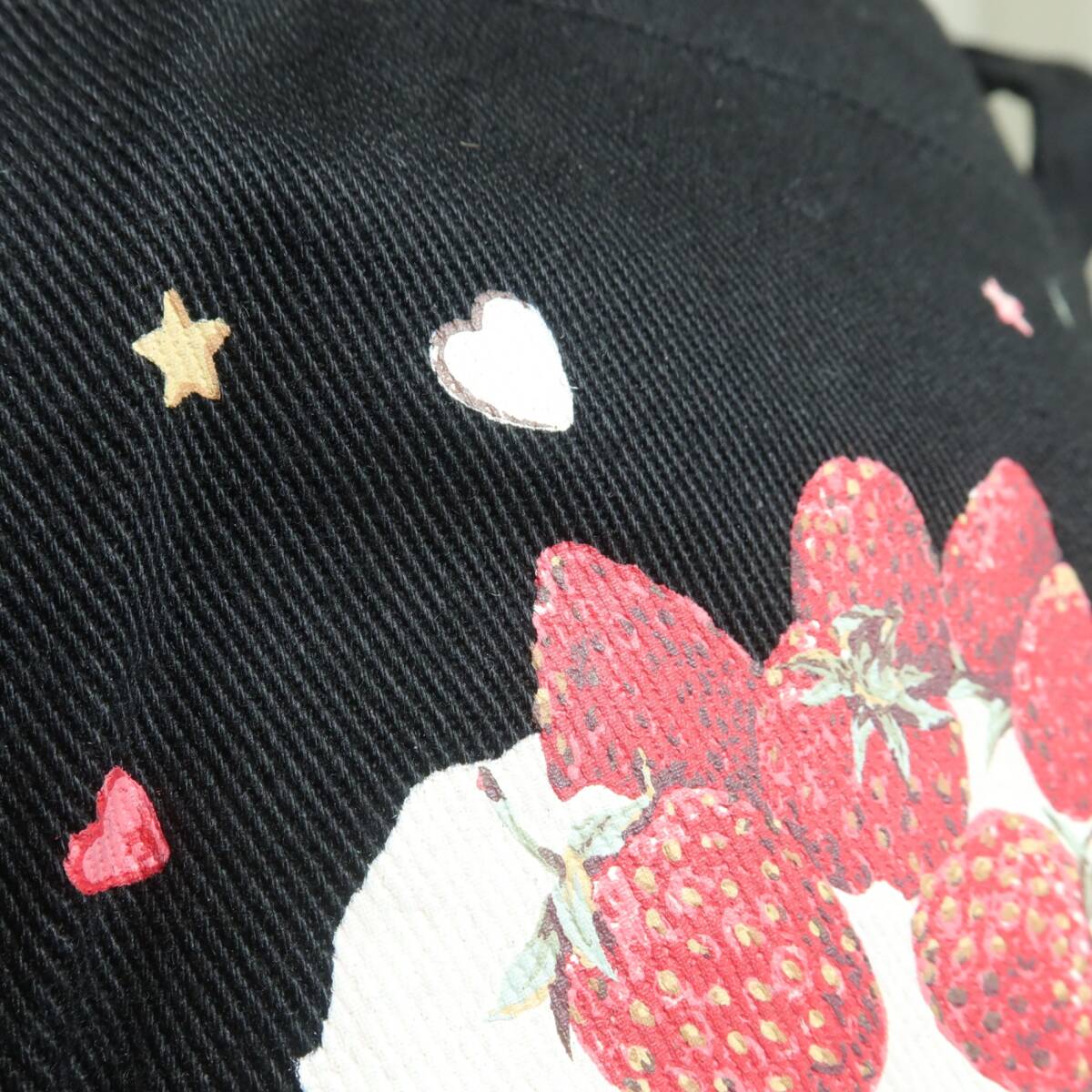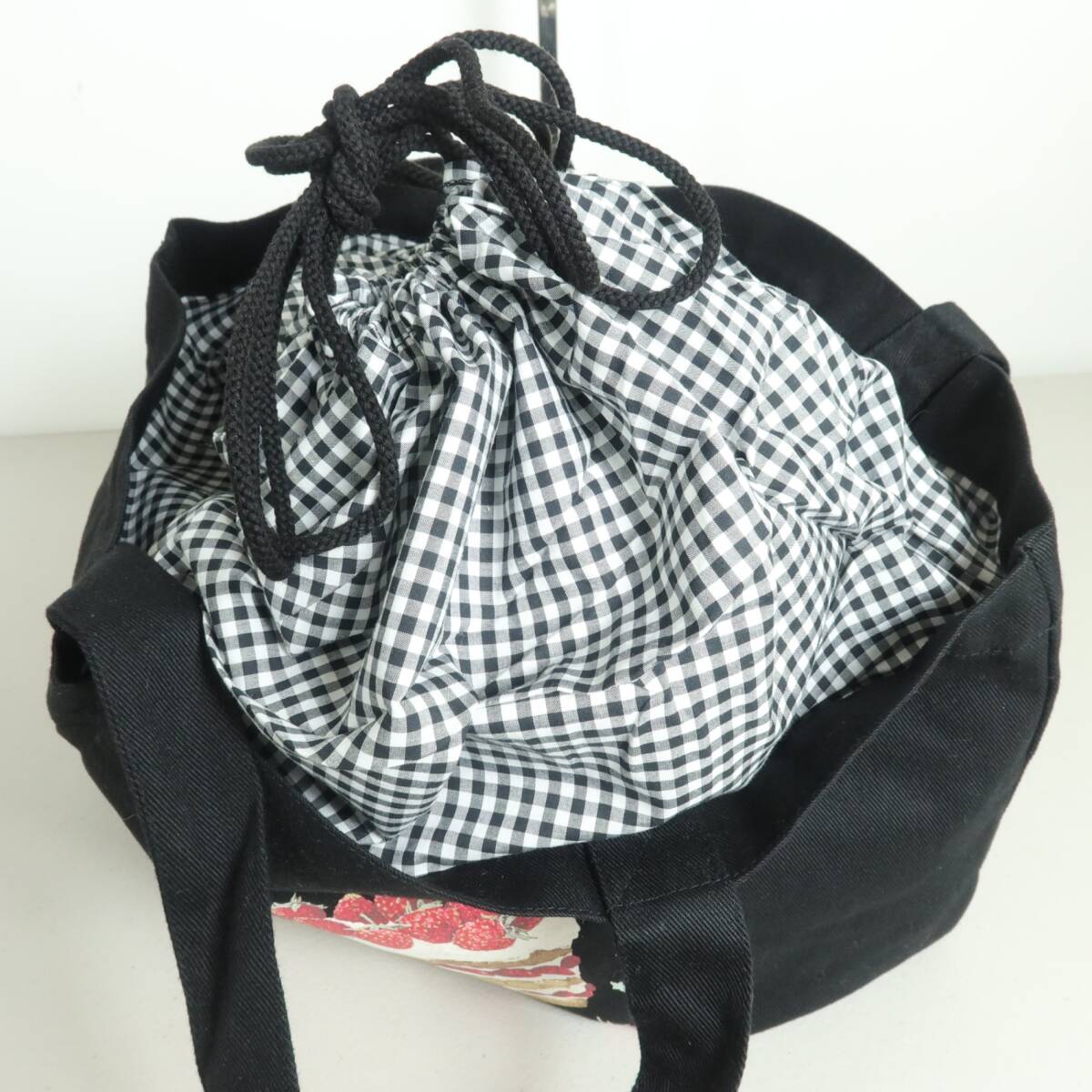 | 商品説明 | 【実寸約】縦25.5横32.5マチ11 【素材】綿100 【状態】普通の使用感あるお品物~状態良好で美品の域に入るお品物 【デザイン】黒系 苺のケーキが印象的な スイーツパーティプリントのトートバッグです 入れ口はギンガムチェックの巾着風になっている 可愛いバッグです |