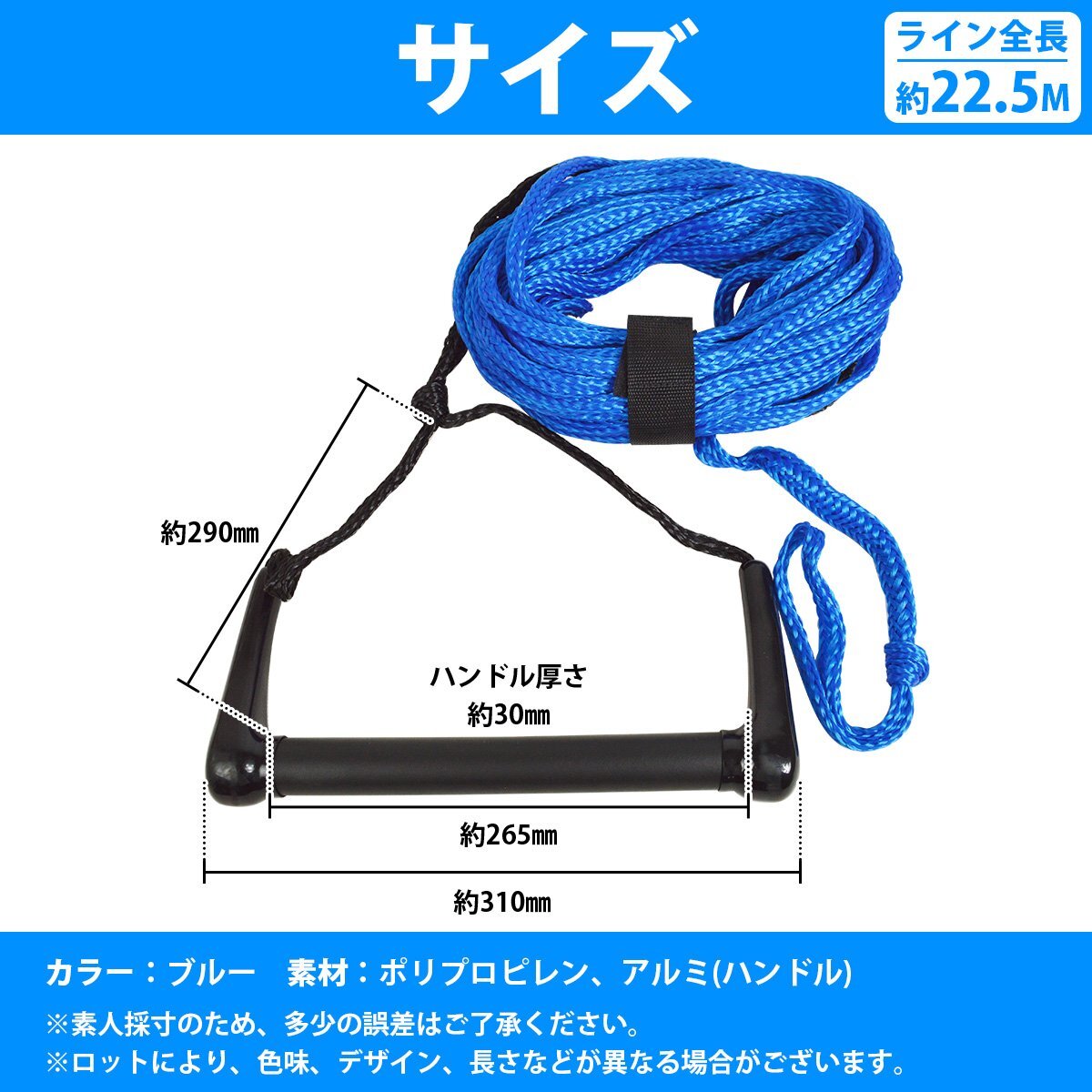 12インチ 23m 75ft ウェイクボード ハンドル ウェイク ハンドル ライン グリップ ロープ セット マリンジェット 青 ブルー