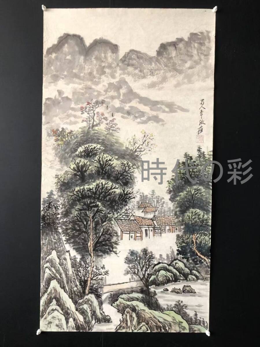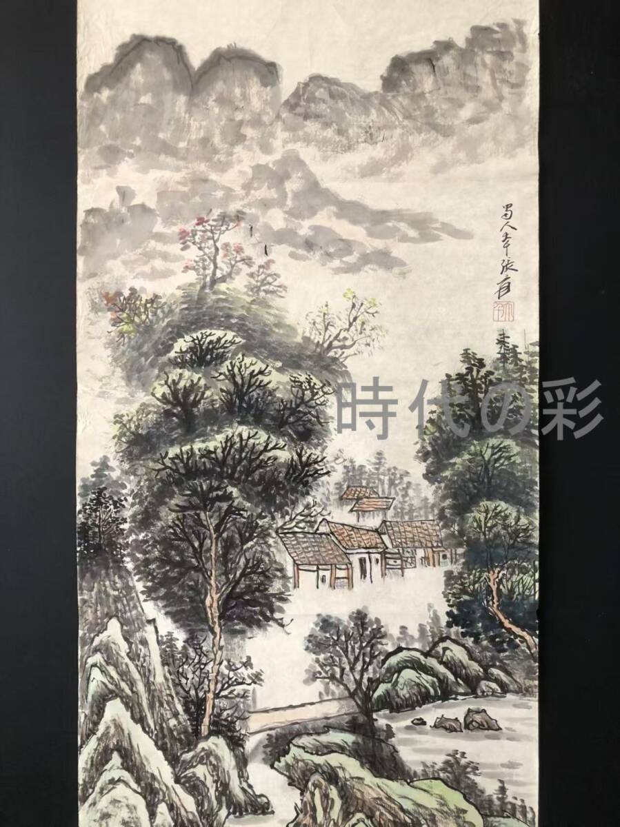 【美の継承】中国古美術 書画家 張大千作款【山水画】肉筆保証 三尺画芯 水墨画 書画 宣紙 立軸 巻き物 妙墨逸品 時代物 古玩 R07102019