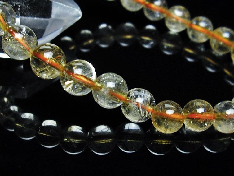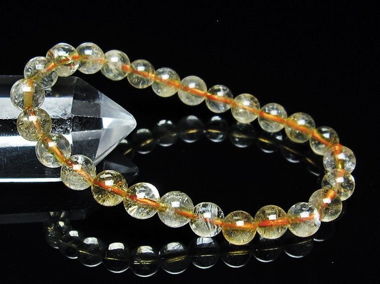 | ■商品名: 虹入りシトリンブレスレット ■商品ID: T366-11352 ■商品重量:約 12.8g ■商品サイズ:内周約:155mm(±5mm)粒直径約:7mm(±0.5mm) 【シトリン(黄水晶)】 シトリンは和名で「黄水晶(きすいしょう)」と呼ばれるように、水晶に鉄イオンが混入し、放射線による結晶格子欠陥によって黄色に変色したものです。 シトリンは黄色い色合いからヨーロッパの柑橘類シトロンが語源となり名付けられたといわれています。 一口に黄色と言っても鮮やかな黄色から温かみのあるオレンジがかったものまで様々で、シトリンの持つ色合いは人をポジティブな気持ちにさせてくれる魅力を秘めています。 シトリンは優しくもエネルギッシュなパワーを持つことから古来より「太陽を象徴する石」といわれ、幸福と繁栄をもたらすとされてきました。 また、黄色や金色をしたパワーストーンは金運や財運を高める効果があるとされ、シトリンは金運向上に効果を発揮するパワーストーンの代表格としても知られ人気を博しています。 シトリンは金運と仕事運の向上と人間関係の調和をもたらすとされていますので、人に携わる仕事で成果をもたらしたいと考えている方や職場内でのコミュニケーションを円滑にしたいと考えている方におすすめです。 また、緊張や不安感などのマイナス感情を取り除き生命力を高めるともされているので、気分が落ち込みやすかったり疲労をため込んでしまっている状態の方には優しいパワーで癒しと活力を与えてくれるでしょう。 ⇒ シトリンをもっと詳しく ◆ワンポイント情報 シトリンは大昔トパーズの代用品として「シトリントパーズ」や「ゴールデントパーズ」「クォーツトパーズ」などの別称で呼ばれることが多かったようです。 「ゴールデントパーズ」と「インペリアルトパーズ(ゴールドカラーのトパーズ)」が同様の意味として使われている場合がありますが、基本的には「ゴールデントパーズ」はシトリン、「インペリアルトパーズ」はトパーズの仲間になります。名称がややこしいですが間違えないように注意しましょう。 |
