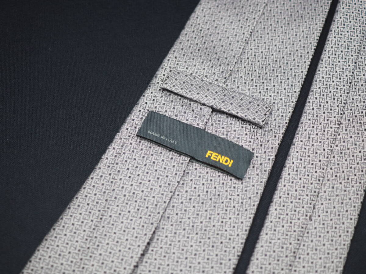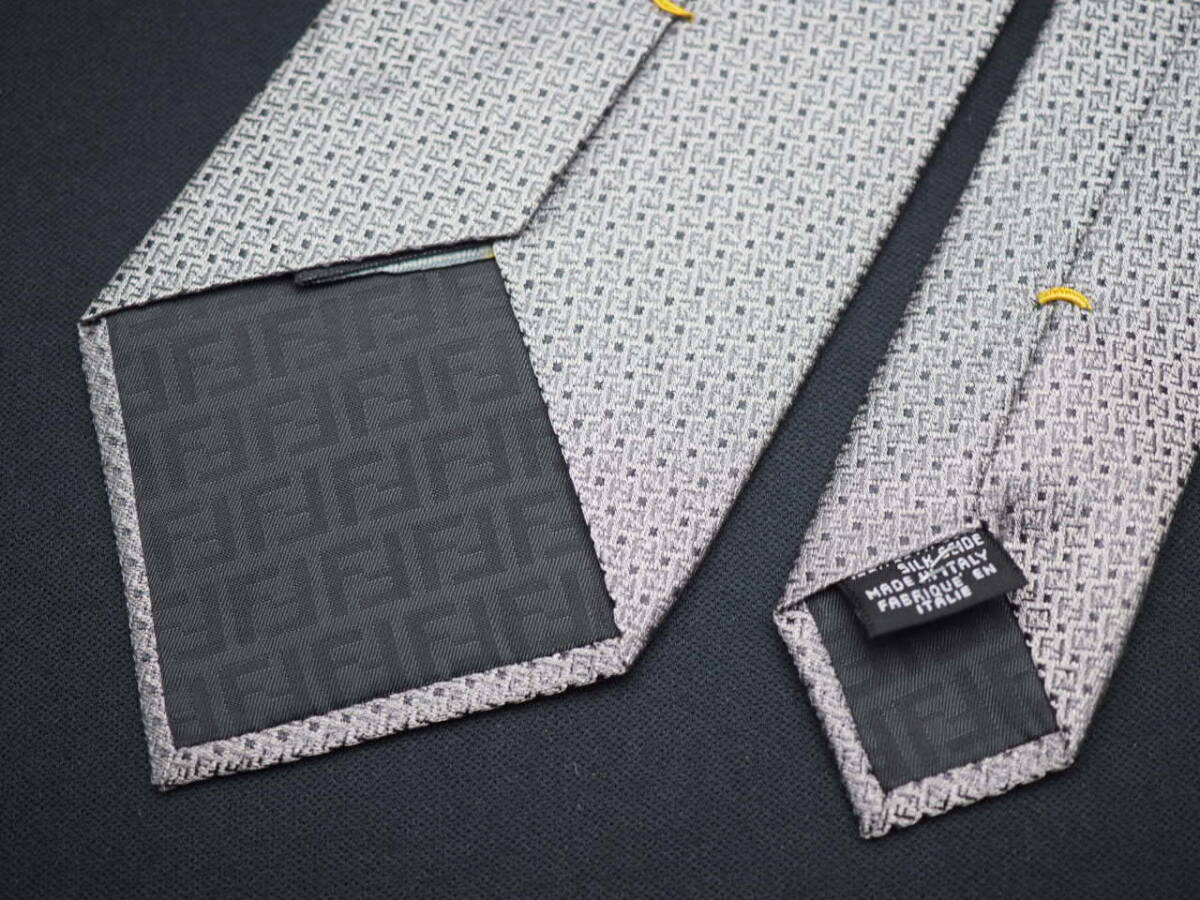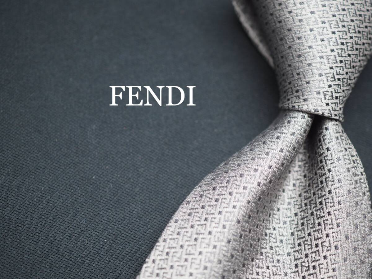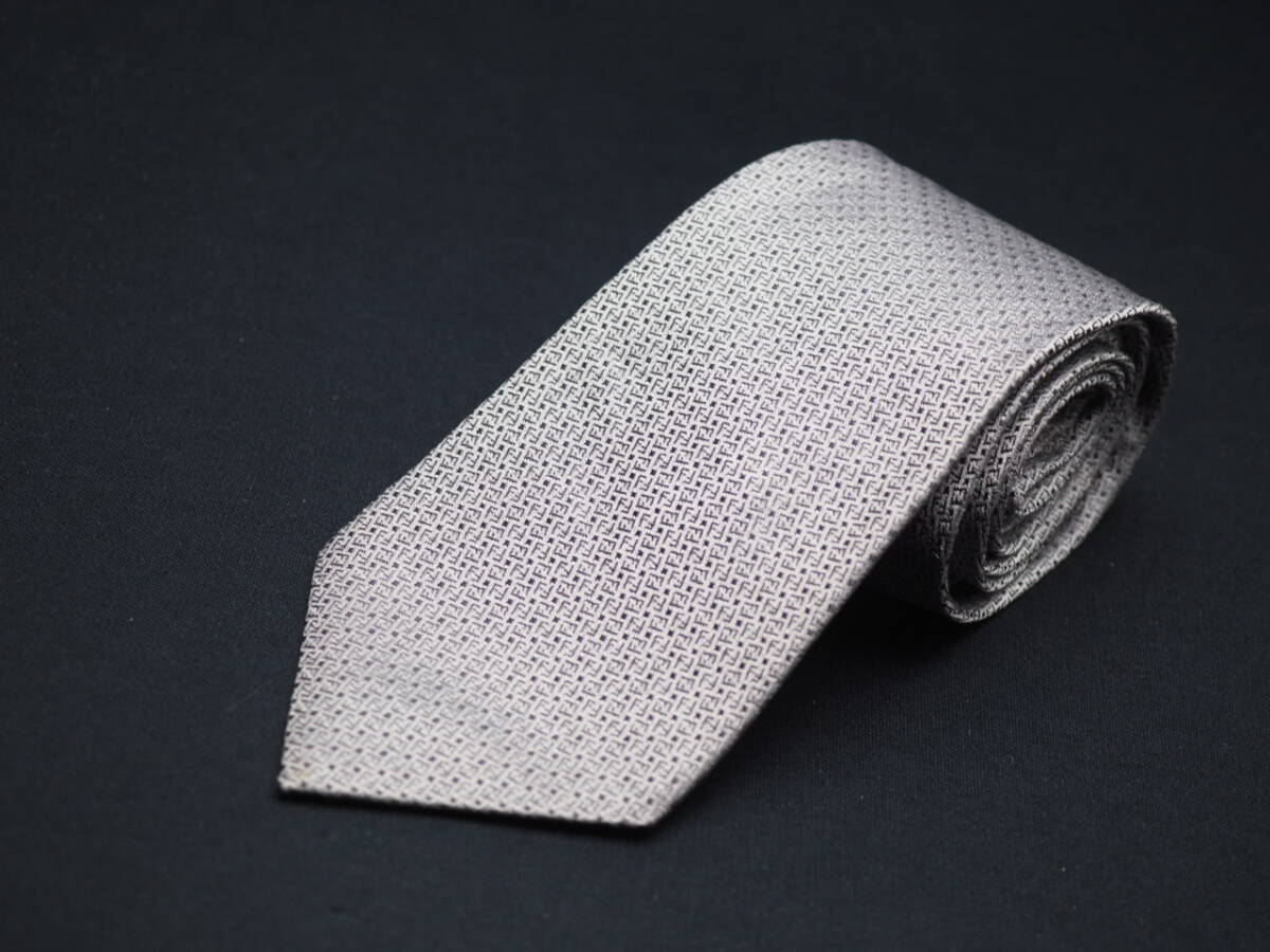 美品【FENDI フェンディ】 G1626 ロゴ グレーシルバー SILK ブランド ネクタイ 古着 良品 転売 仕入
