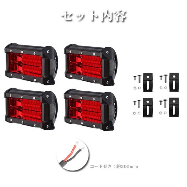 送料無料.. LED ワークライト 72W 5インチ 作業灯 補助灯 投光器 レッド 6600LM 12V/24V 建設機械 SUV トラック ランクル SM72W 4個 新品