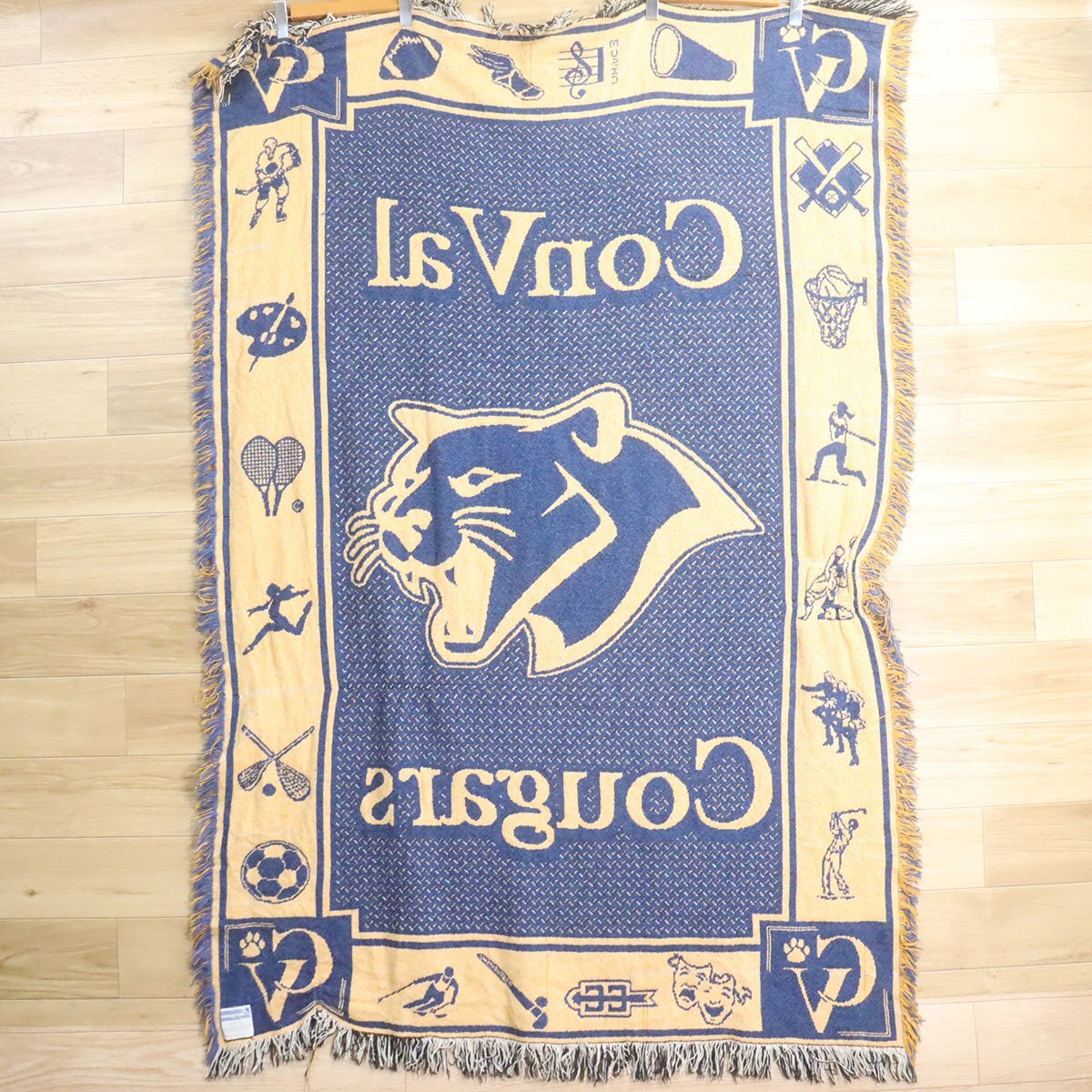 B5-1 I/I11.11-2 USA製 ConVal Cougars ピューマ クーガー スポーツ ラグ マット カーペット ブランケット タペストリー 雑貨