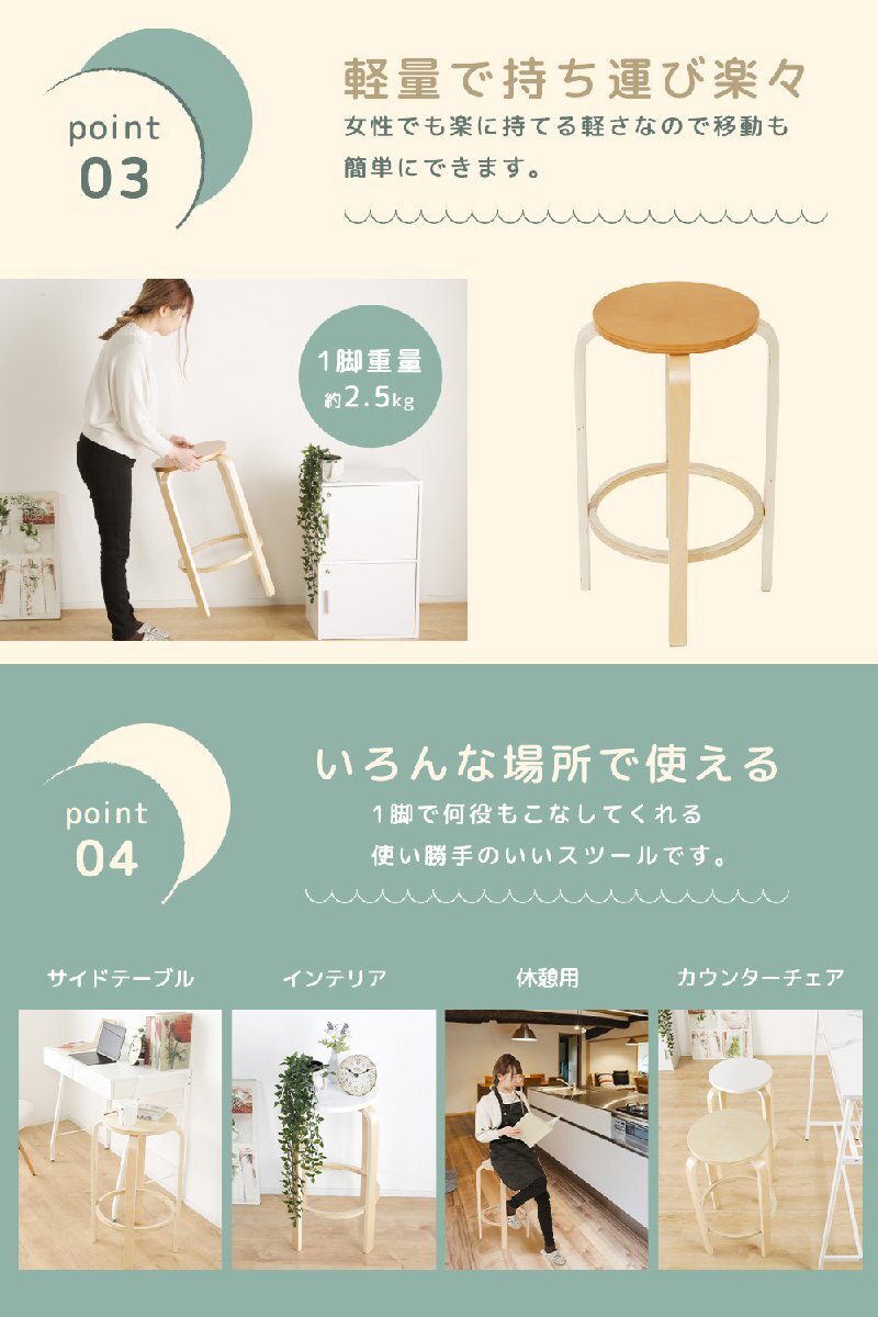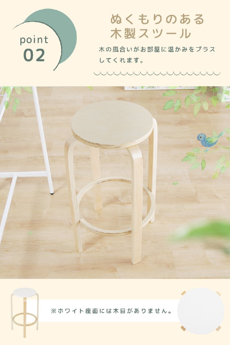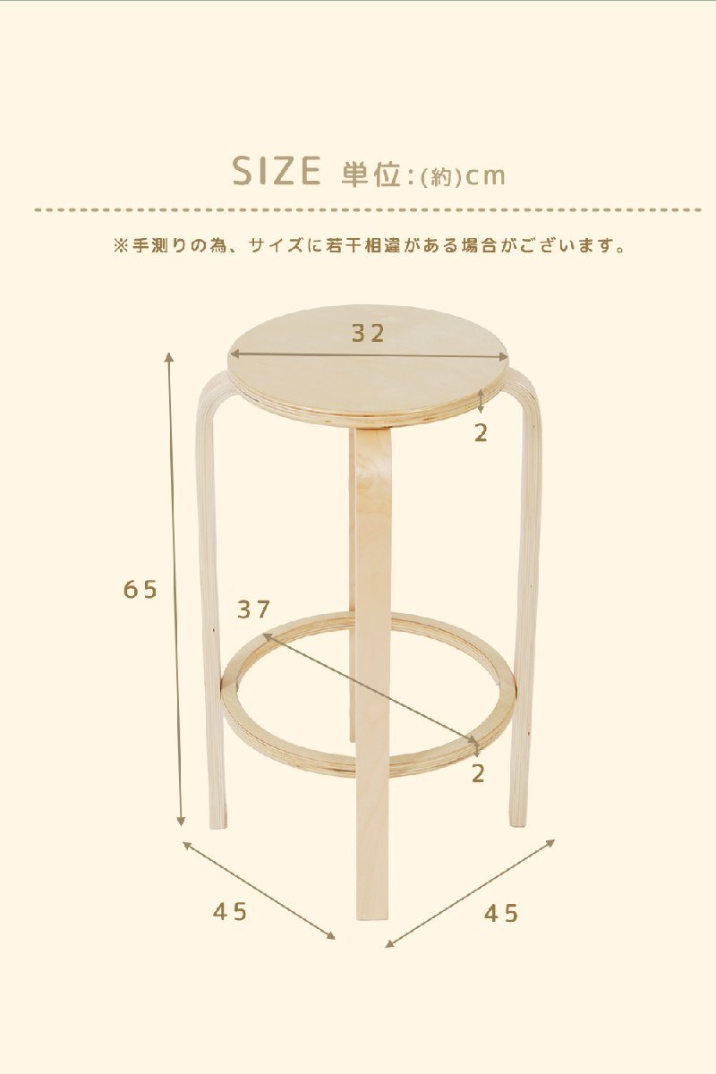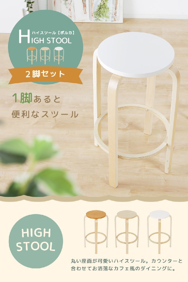ハイスツール チェア 丸型 スツール 2脚セット ハイチェア 幅45cm 木製 木目 軽い 軽量 マルチチェア