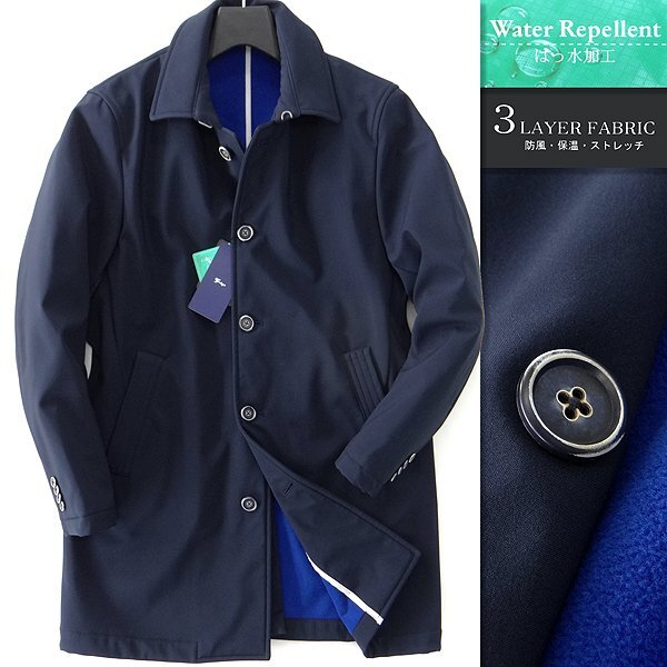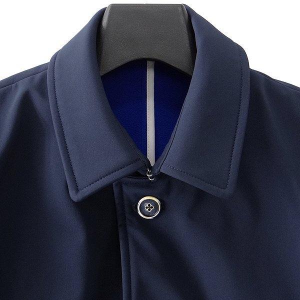 スマートに着回せる【撥水・防風・保温・ストレッチ】の高機能3レイヤーボンディングステンカラーコートです。 表地には肉厚感のある3層ボンディング構造のテクニカルファブリックを使用しており、生地の間に防風フィルムやフリースをボンディングしているので、軽量で柔らかく、スッキリとした見た目なのにダウン並みの保温効果があります。 暖かいのに着膨れせずにスマートに着回せるのが魅力で、柔らかくソフトな生地感で嵩張らず、スーツの上にも余裕で着用でき、秋先から冬~春までオンオフ兼用で活躍してくれます。 袖裏は滑りの良い裏地を使用しているので、袖通しの良さも心配ありません。 【デザイン】 ・身頃と背裏はフリース仕様 ・袖は裏地付き ・フロントは5つボタン ・センターベント ・袖先は4つボタン |