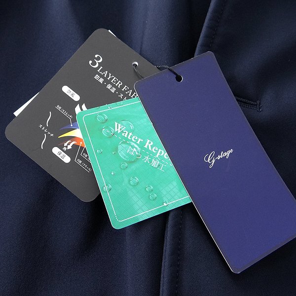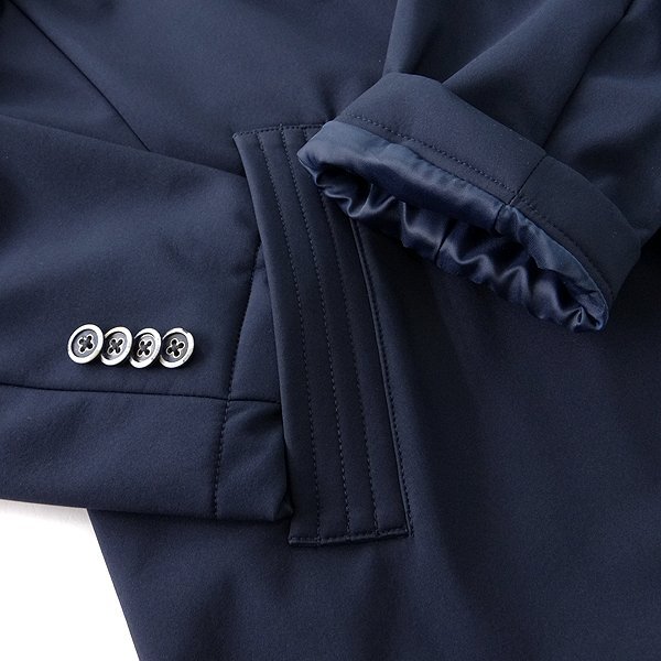 46サイズ(Mサイズ相当・画像は別サイズで撮影) ※商品に記載されたサイズ・寸法です※ 肩幅44cm 身幅54cm 袖丈62.5cm 着丈82cm 表側:ポリエステル100% 裏側:ポリエステル100% ネイビー |