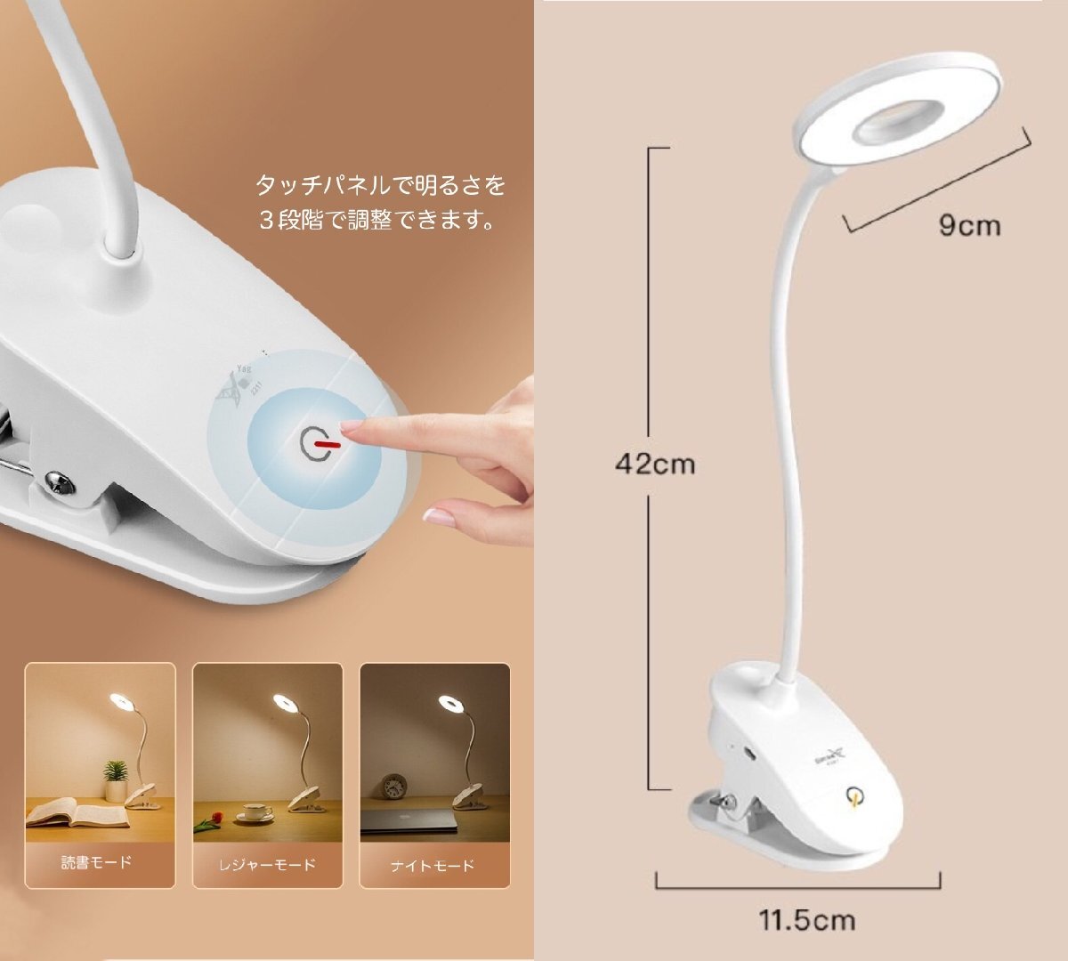 クリップ式のLEDライトです。読書やデスクワークに最適です。