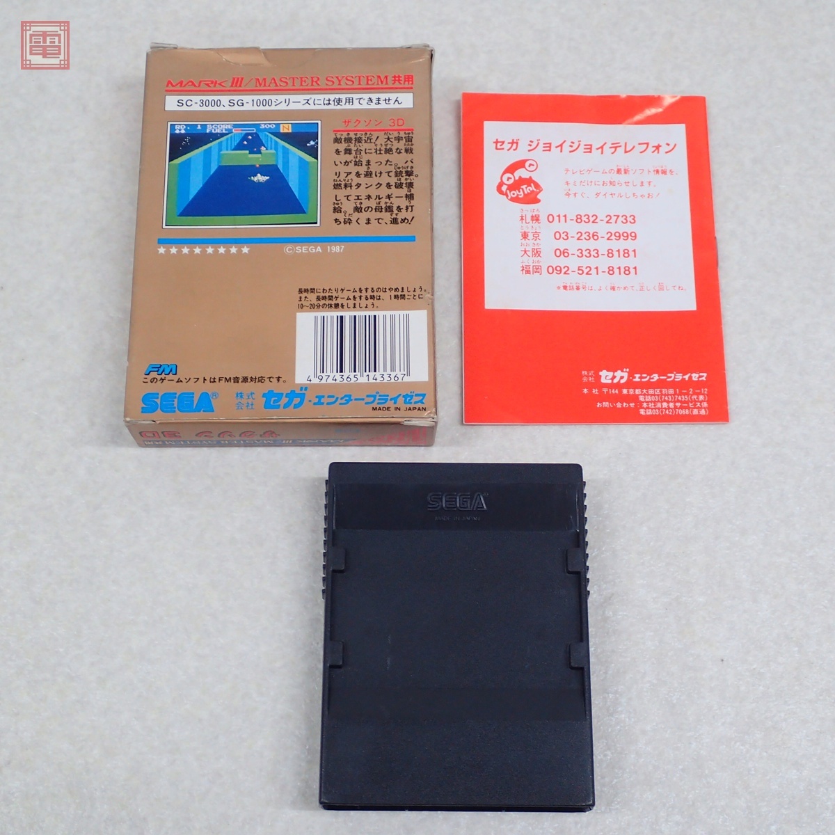 動作保証品 マークIII/マスターシステム ザクソン 3D MARK III/MASTER SYSTEM セガ SEGA 箱説付 こちらの商品は動作保証品となりますので、一週間の動作保証をお付けします。 ■箱にスレ、角スレ、汚れ、ヤケ、キズ、折れがあります。 ■取扱説明書にスレ、角スレ、汚れ、折れ、シワ、ヤケ、キズ、ホチキス部のサビ、シミがあります。 ■カセットにスレ、キズ、汚れ、ヤケがあります。 ■上記以外は未チェックです。 ■写真のものが全てです。付属物の有無や状態については写真からご判断ください。 ■チェックに使用したモニターやチェック機器等は、特に表記がない限りは付属いたしません。 ■商品到着後、当店の保証期間中は、商品及び箱や取説、付属品などを1つでも廃棄や破損をしないようにお願い致します。廃棄や破損をした場合、商品に問題があった場合でも対応や返金などの対処ができなくなります。 | |||