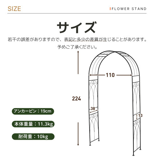 • ◎03 高耐久素材高品質なスチール製で、粉体塗装を施して、強風や雨にも耐える優れた耐久性。長年にわたって使用できます。自由な飾り方高さ224cm、幅110cmの広い空間には、さまざまなツル植物や花を絡ませることができ、庭全体が色とりどりの花で埋め尽くされ、自然と調和した美しい空間が広がります。