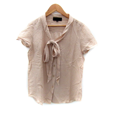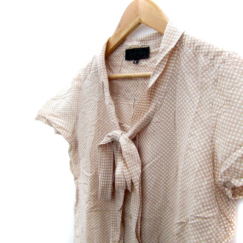 アンタイトル UNTITLED ブラウス シャツ 半袖 ドット柄 水玉柄 リボンタイ シルク混 2 ベージュ /SY16 レディース