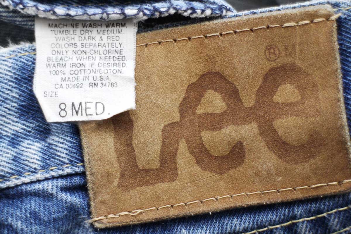 ★80s USA製 Leeリー 305 デニムパンツ 8 MED★SDP488 オールド ビンテージ ジーンズ ストレート スリム ハイウエスト レザーパッチ