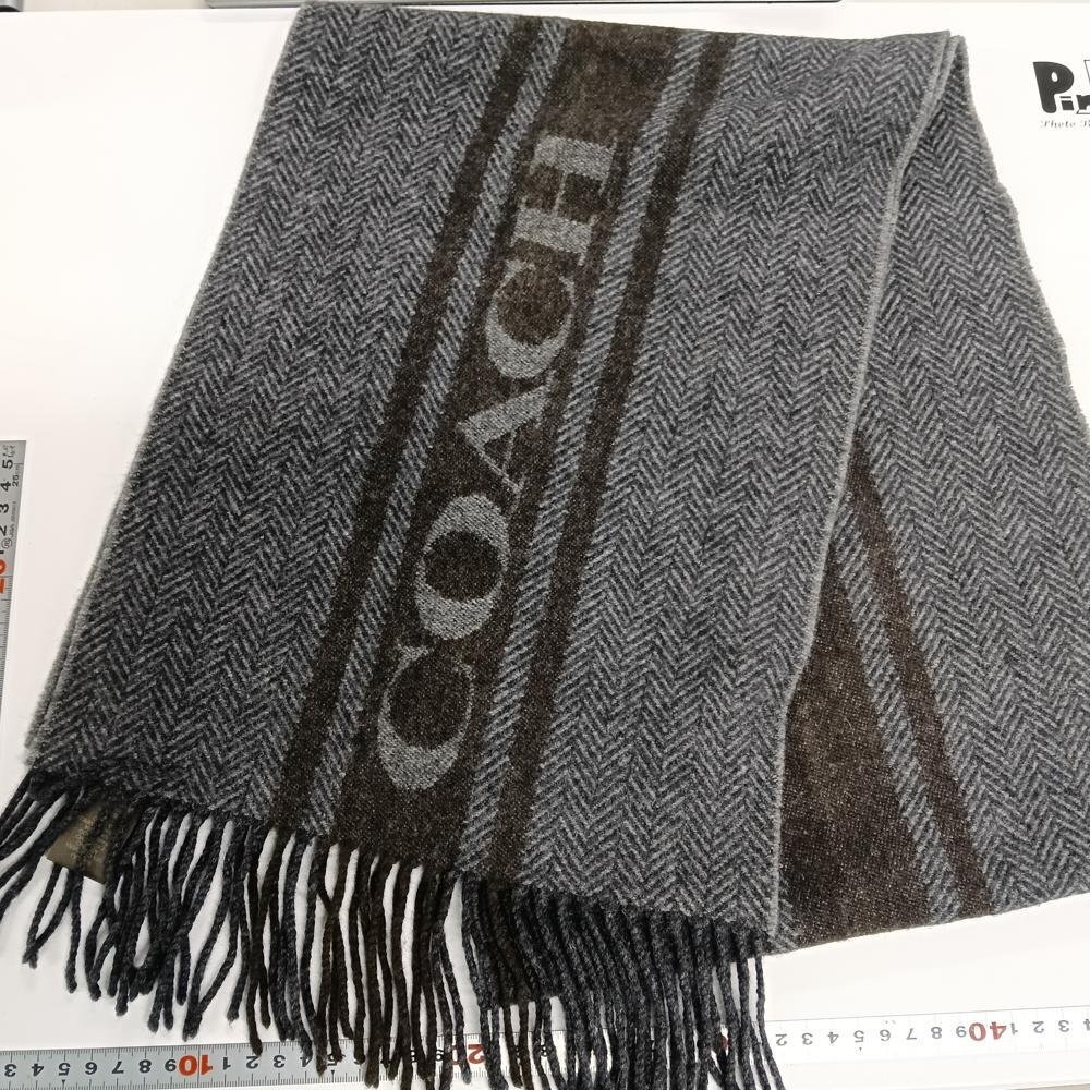 COACH コーチ グレー ヘリンボーン ロゴ マフラー 3608374