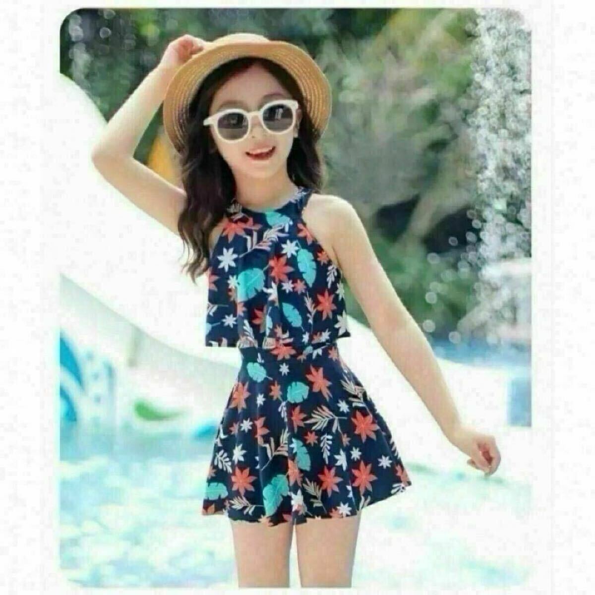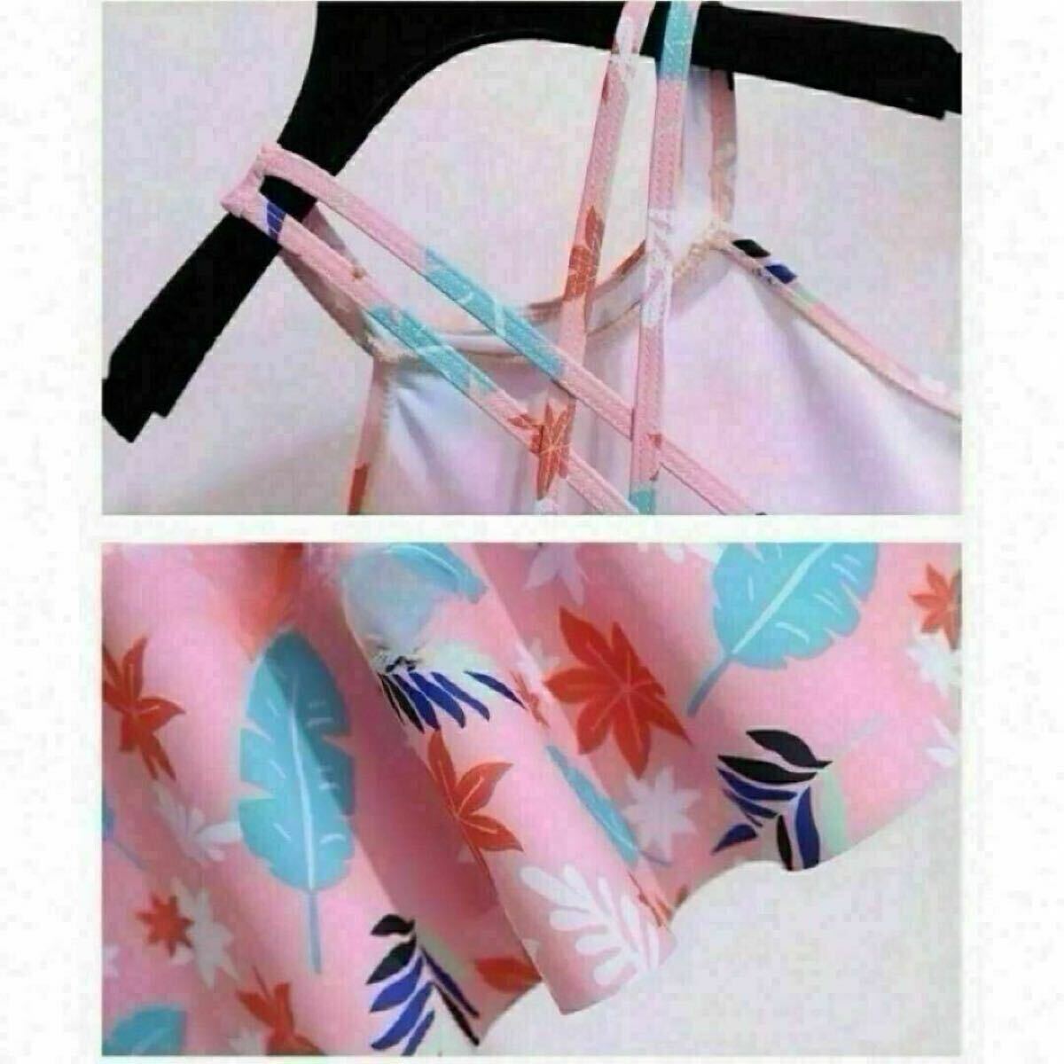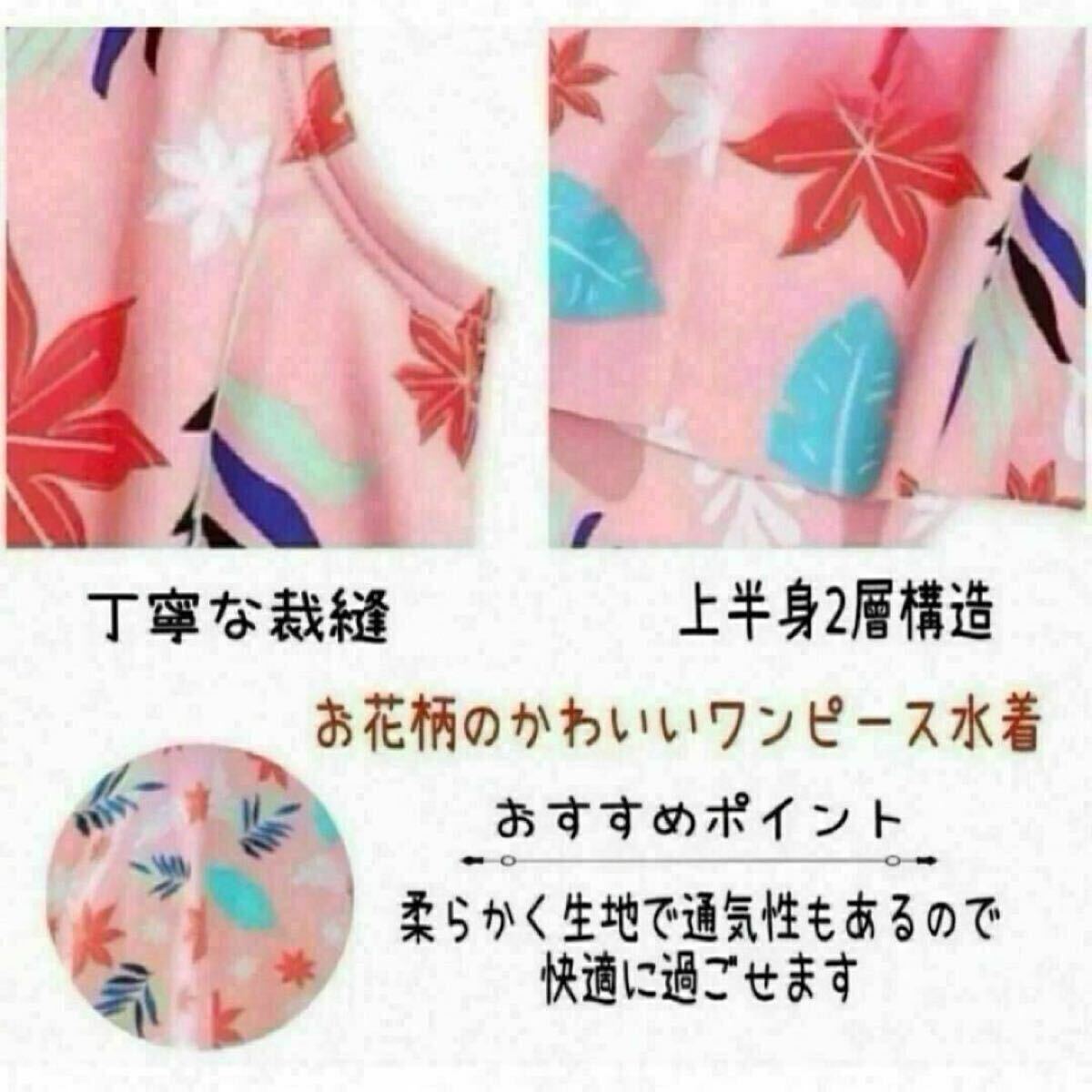 かわいい花柄のワンピース水着。上半身は2層構造になっていてカバー力抜群。人気のAラインヒラヒラスカートもおしゃれでかわいいワンピースの中はショートパンツ付き。トイレがスムーズで楽チンです。バックスタイルは紐がクロスになっていてかわいいです。(紐は調節不可ですがズレにくい仕様)ショートパンツのウエストはゴム仕様です。パンツの内部分からヒモが出ています。(1つの穴から2本紐が出ていますが蝶々結び可)柔らかい生地で通気性もあるので快適に長時間水遊びを楽しむ事ができます。