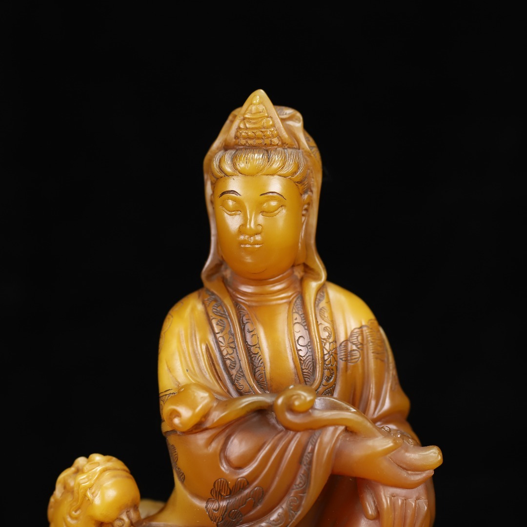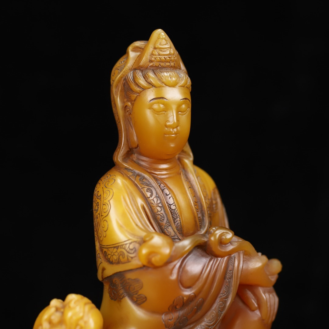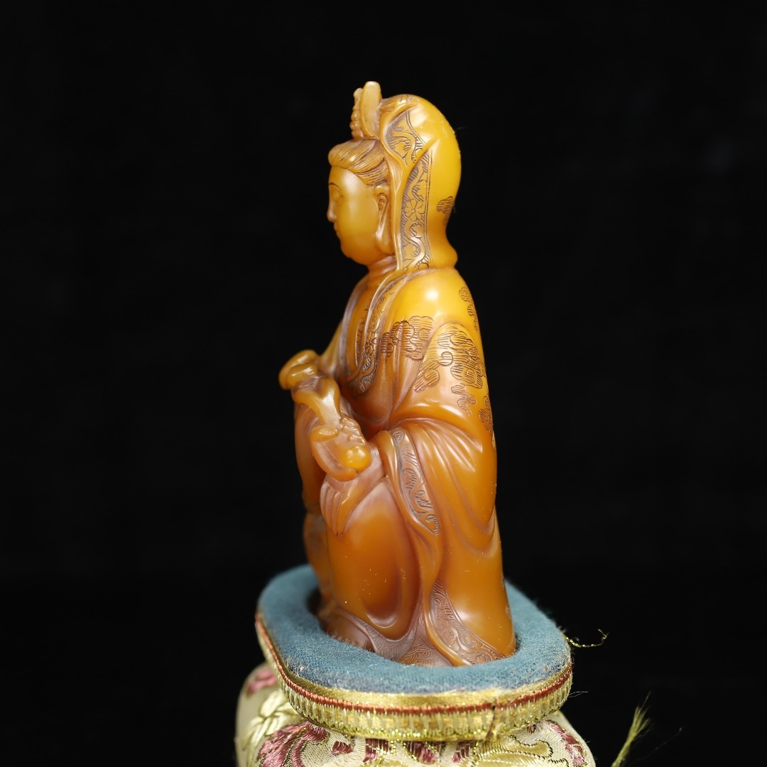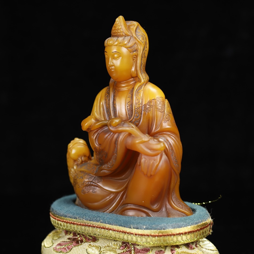 旧蔵 清乾隆時期 寿山石 田黄石 黄紅田かわいい彫觀音 置物 天然石 手彫 篆刻 極細工 中国古玩 骨董品 古美味 211