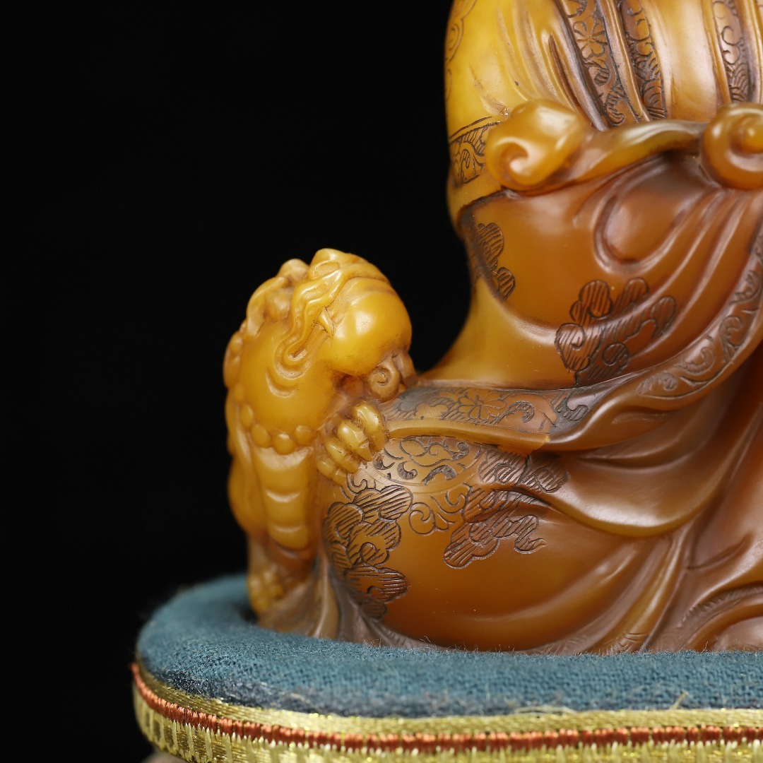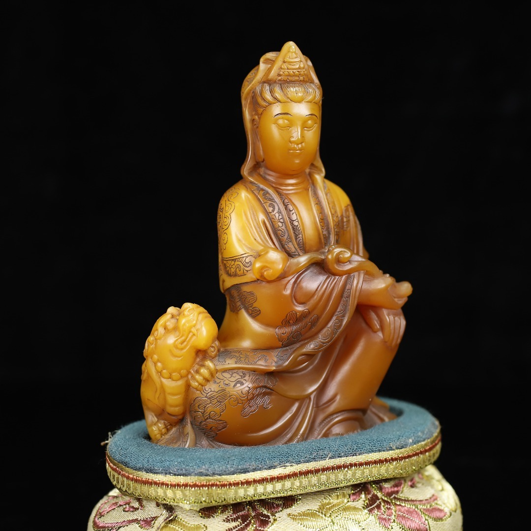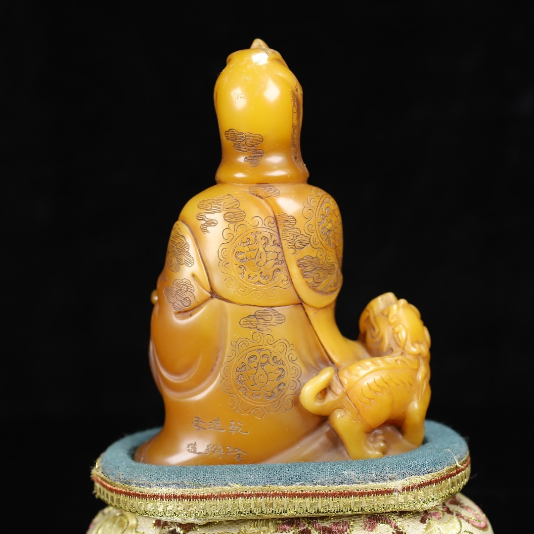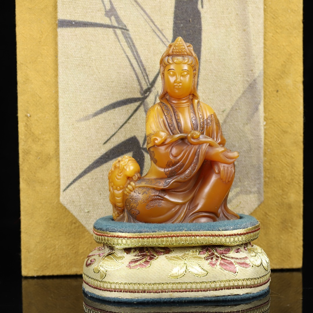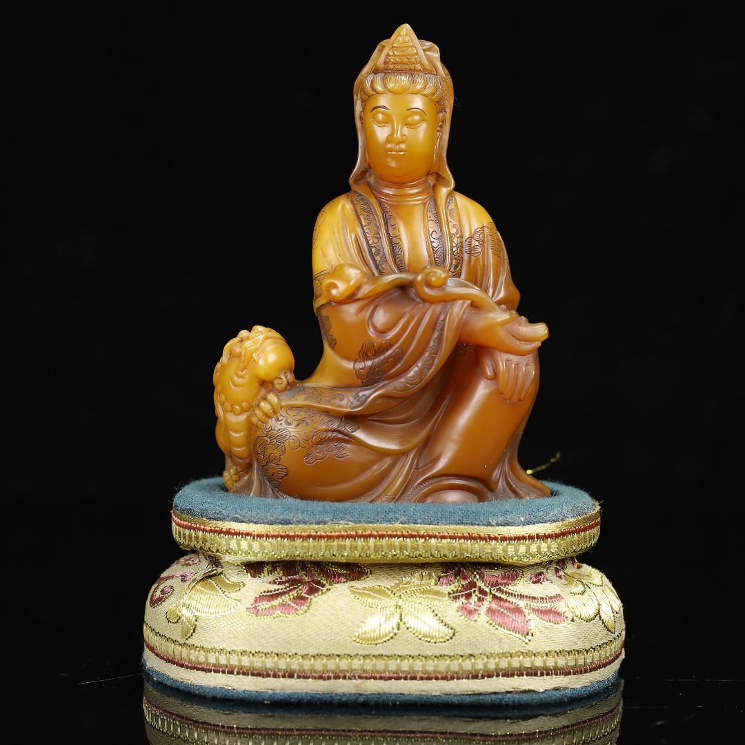 旧蔵 清乾隆時期 寿山石 田黄石 黄紅田かわいい彫觀音 置物 天然石 手彫 篆刻 極細工 中国古玩 骨董品 古美味 211