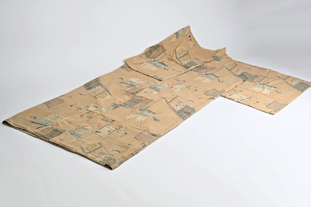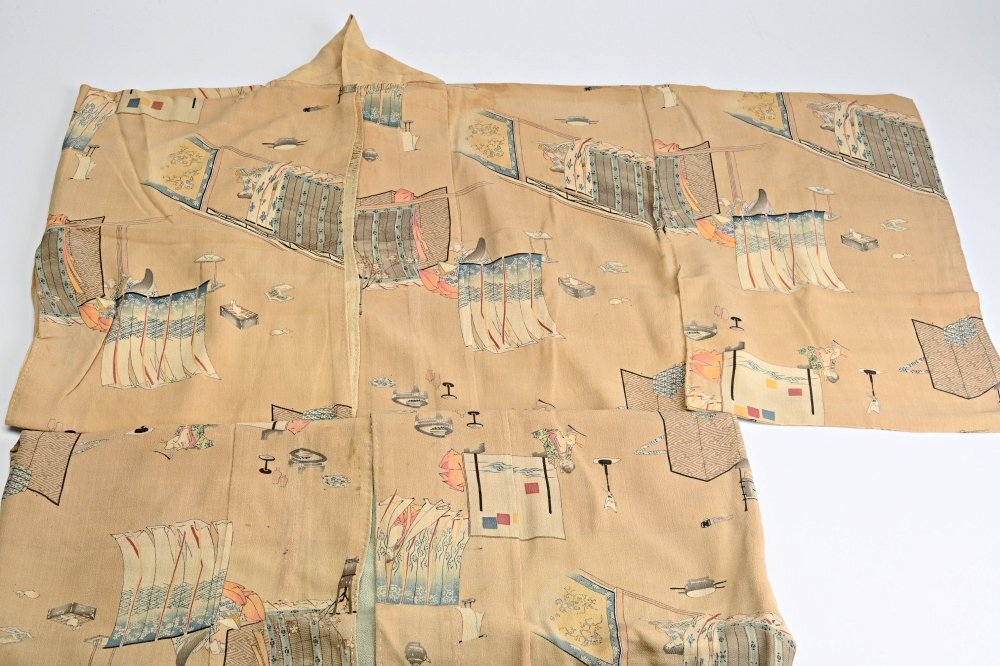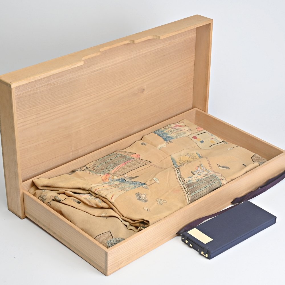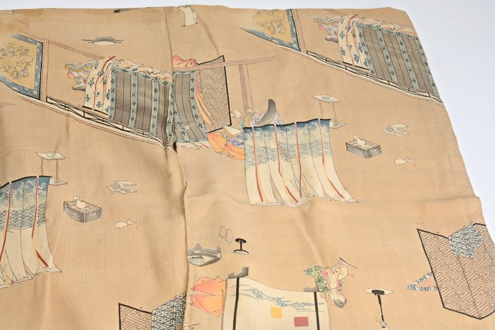 IJ1803■時代 友禅 源氏物語双六盤図 着物 箱付◆h