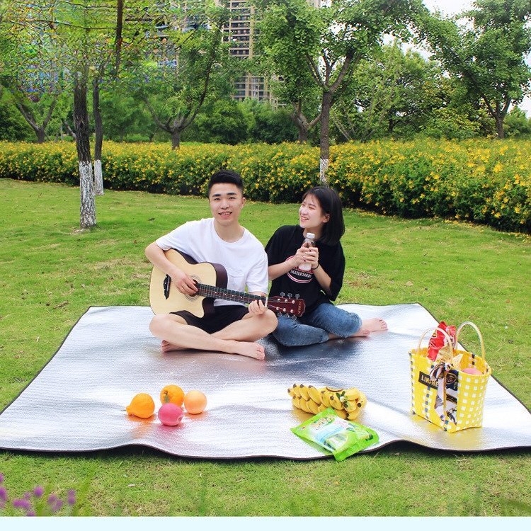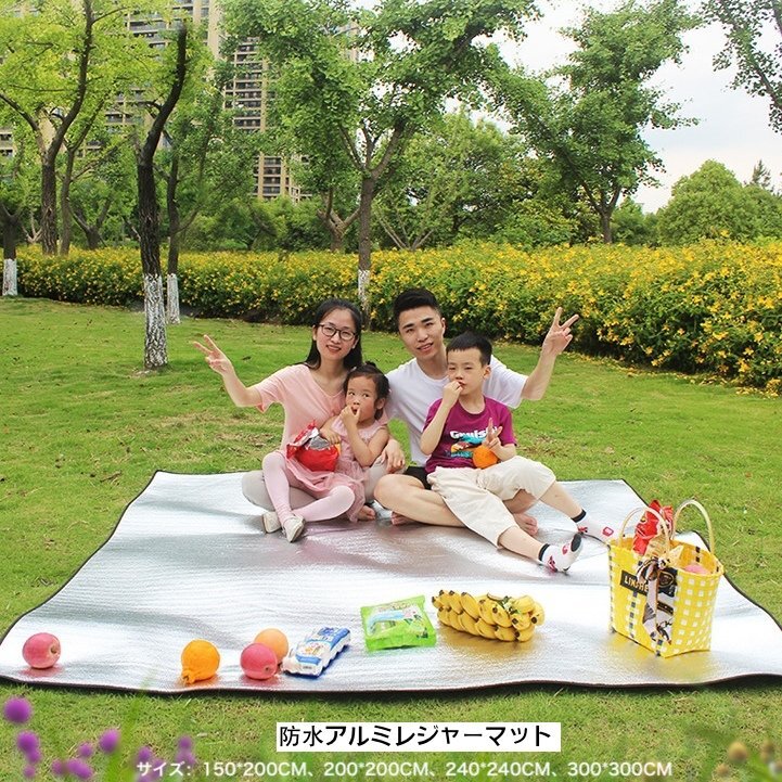 アルミレジャーマット アウトドア用品 ピクニック キャンピング キャンプ テントフロアマット 防湿パッド 折り畳み アルミシート 保温 断熱 防湿 防災 耐水性 大判 車中泊 収納袋付き 厚さ約2.6MM